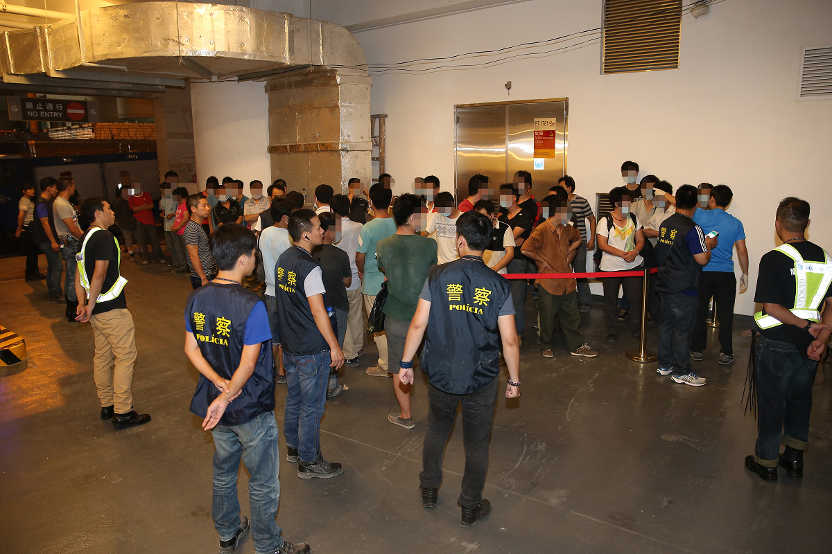 治安警根據情報,指有關建築工地內懷疑有人非法工作,故於昨晚8時到場突擊巡查。在4個小時的巡查行動中,總共派出八十多名警員,合共核查了96名工人身份。期間於氹仔某建築工地查獲18名工人涉及非法工作,持中國護照及中國往來港澳通行證;及查獲3名工人涉嫌過界工作;及後查獲1名澳門居民涉嫌僱用非法勞工。非法工作者年齡介乎18至57歲,月薪由2,500元至14,000元人民幣,均從事搬運及裝嵌工作。