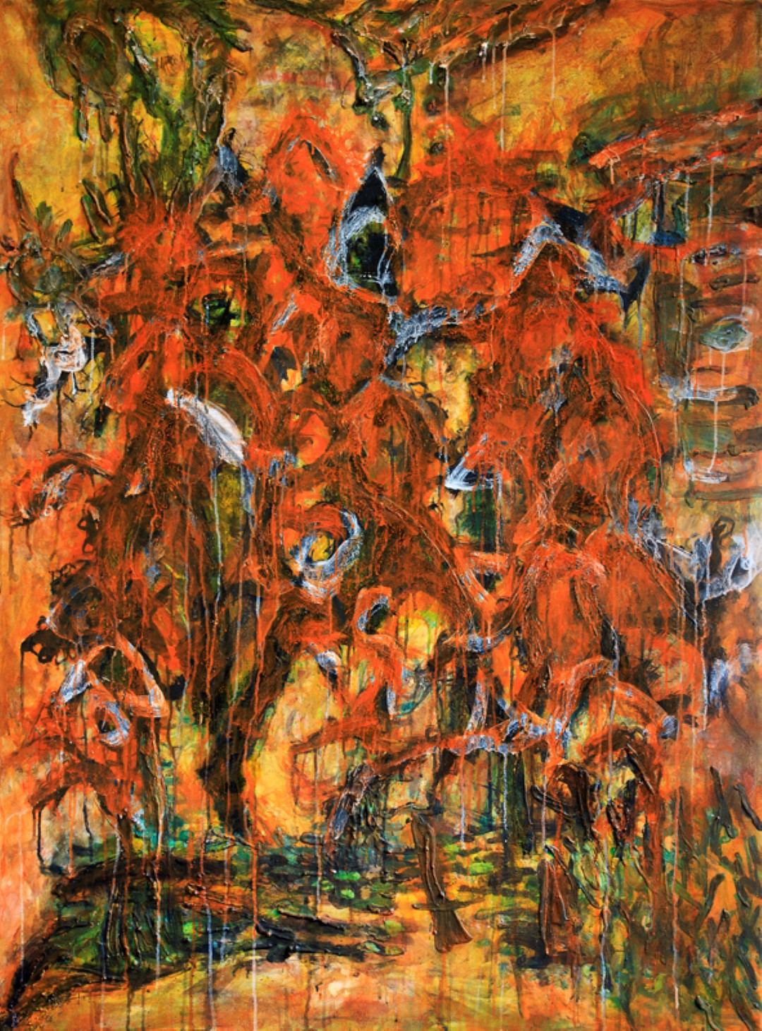 吳方洲是帶有一種原生的自發創作行為的表現主義繪晝,他的藝術表達在潛意識裏總是不按常理出牌,經常直接把內心狀態顯示於畫面上,也許這是內心深處噴發出來的情緒。他必須歷久彌新地進行這種方式的創作,才能時常保持良好的生存原狀,才能不容易被往事和記憶所扭曲。他像是被一種藏在未知的內心深處的潛意識所纏繞,舞動畫筆,塗繪自己真摯的思想和情感,是心靈慰藉的治療過程。