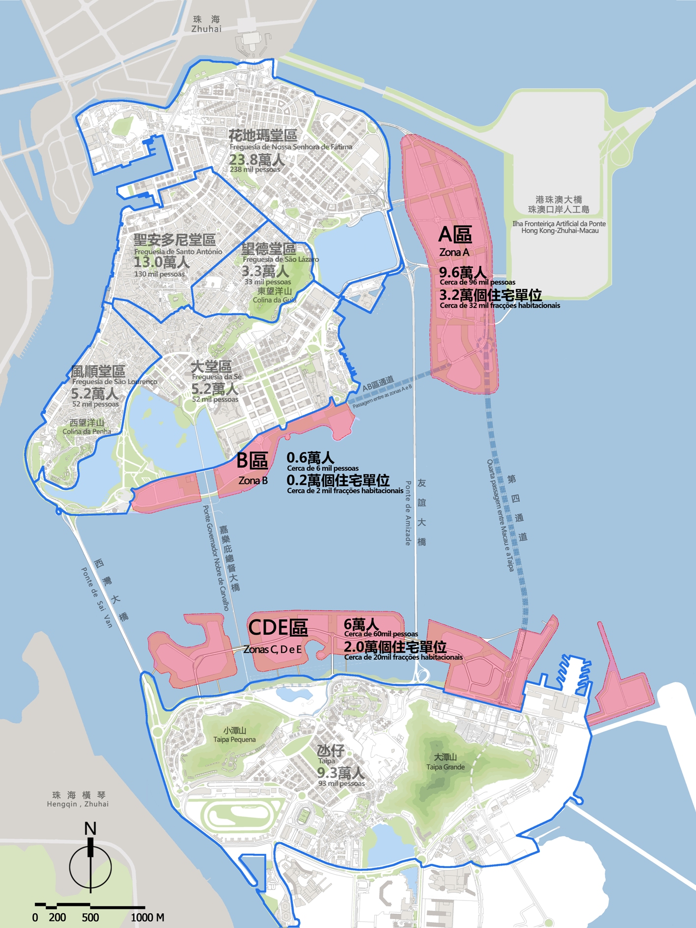 為配合特區政府的住屋保障長效機制及未來房屋政策發展所需,整個新城區則提供5.4萬個住宅單位,A區房屋供應增至3.2萬個單位,與此同時,未來還會將A區聯同港珠澳大橋珠澳口岸人工島、水塘周邊、外港碼頭、黑沙環新填海區一帶等一併作出考慮,開展本澳東區協調發展規劃,以促進上述區域的協調發展,特別是對這一區域的交通配套、社區設施等民生問題,以求達到擴大容量、提高質素的規劃目標,配合區內規劃人口和房屋數量的規模發展。
