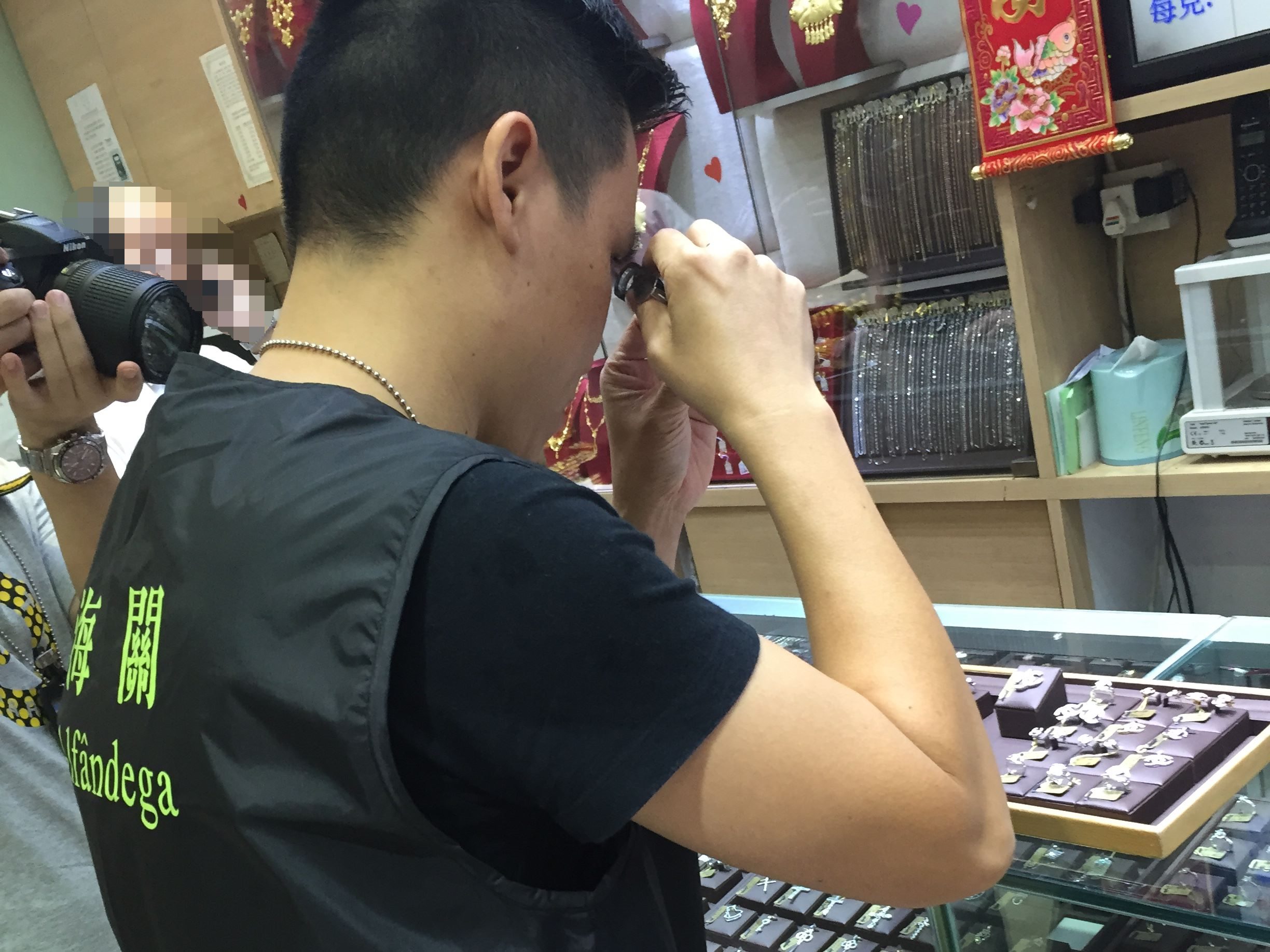 • 海關偵查人員在涉案珠寶金行作出巡查