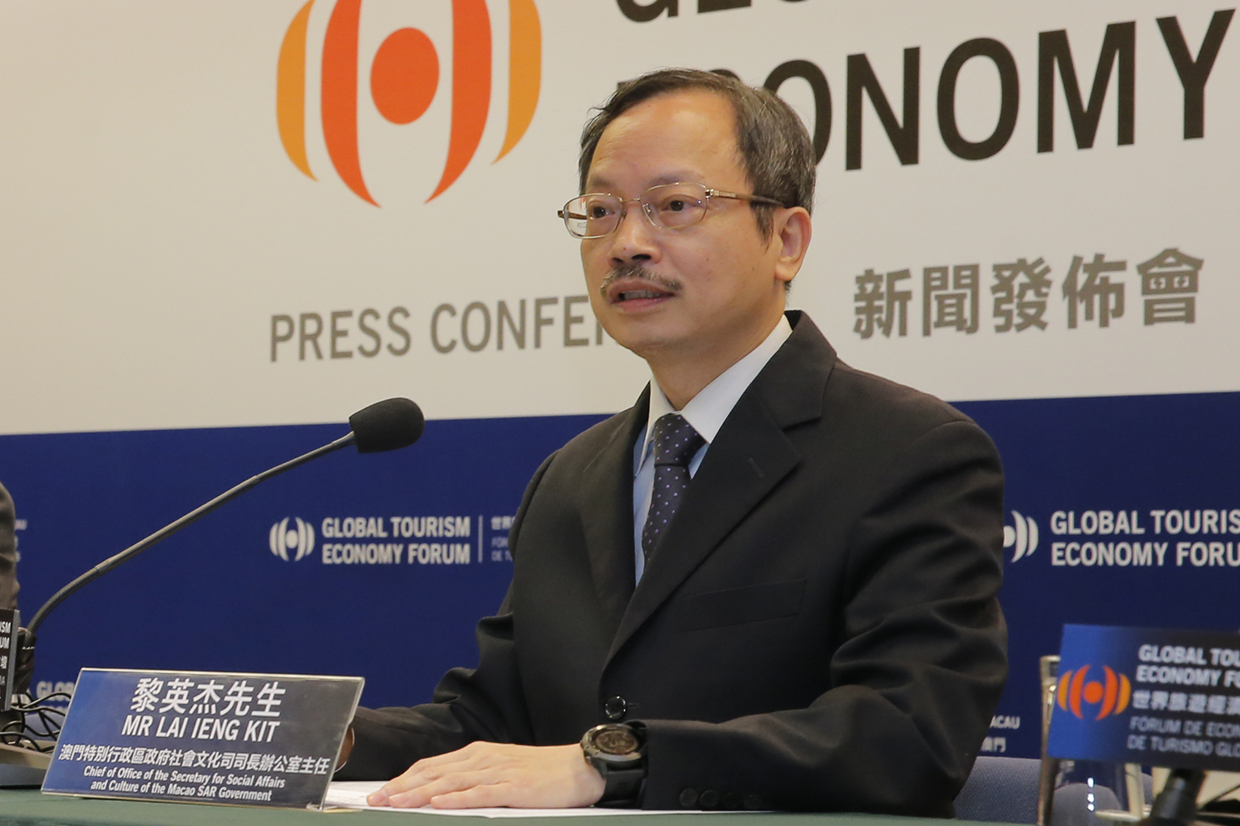 社會文化司司長辦公室主任黎英杰表示:“世界旅遊經濟論壇除了為全球旅遊業及相關產業發展提供重要參考及方向,更有助澳門構建成為‘世界旅遊休閒中心’。我們將盡力辦好論壇,繼續展示澳門在舉辦大型國際活動的能力,以及其多元文化交流的平台作用。特區政府將積極配合國家“一帶一路”戰略,好好把握這個難得的發展契機;一方面充分發揮澳門在海上絲綢之路的節點作用,另一方面推動文化及旅遊等的協同效應,全面促進產業適度多元發展。"