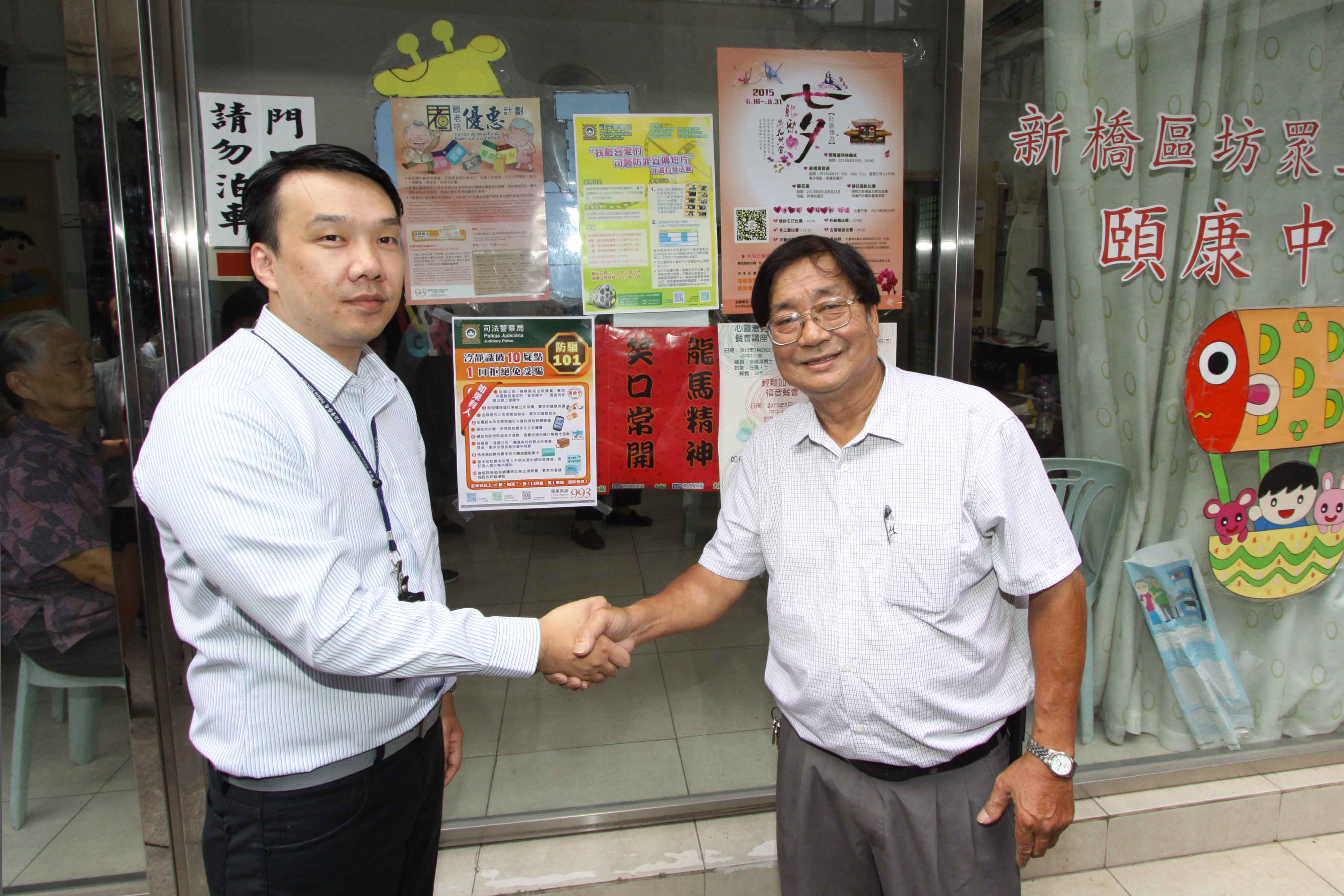 9月22日下午,司警局人員前往三盞燈區進行防盜防騙宣傳工作,向商戶派發防罪宣傳單張,講解賊人慣常的犯案手法、預防方法及解答店員關於防罪方面的疑問。司警局人員表示,每逢長假期前夕,均會進行防罪宣傳,提醒市民注意防盜防騙。由於商舖、小販攤檔也有可能成為賊人的犯案目標,賊人除了盜竊貨物、金錢及店員的私人財物外,亦會以“找贖”手法,或者行使偽鈔等進行詐騙,故司警局派員到商舖宣傳,提升商戶的防罪能力。