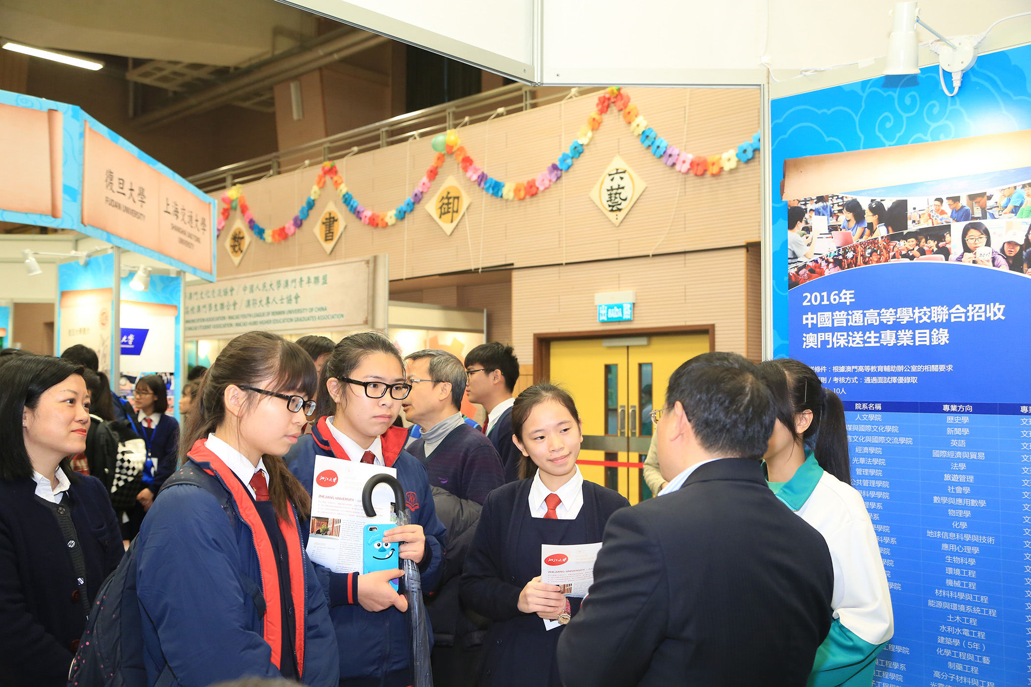 內地50所高等院校組成中國內地高等院校訪問團,在團長范衛宏的帶領下來澳參展。展覽期間,各高校除展示院校的概況之外,亦安排了院校代表駐場解答參觀者的提問,並邀請內地高校的澳門學生社團代表到場與參觀者分享經驗及交流學習心得。除此之外,現場還會派發“2016年中華人民共和國普通高等學校聯合招收華僑、港澳地區及台灣省學生”簡章。