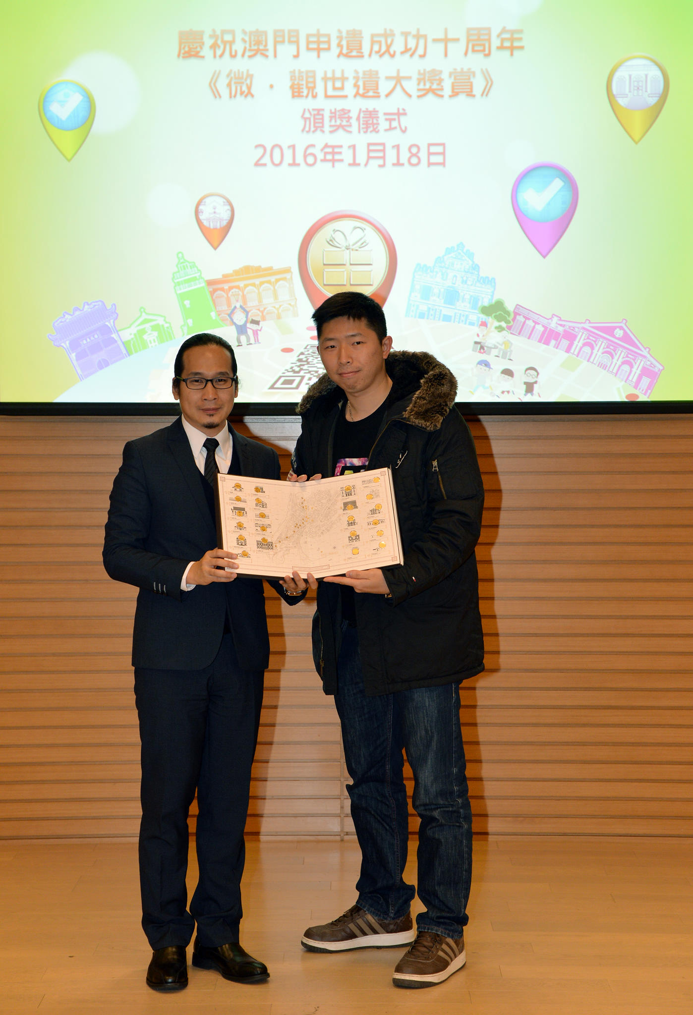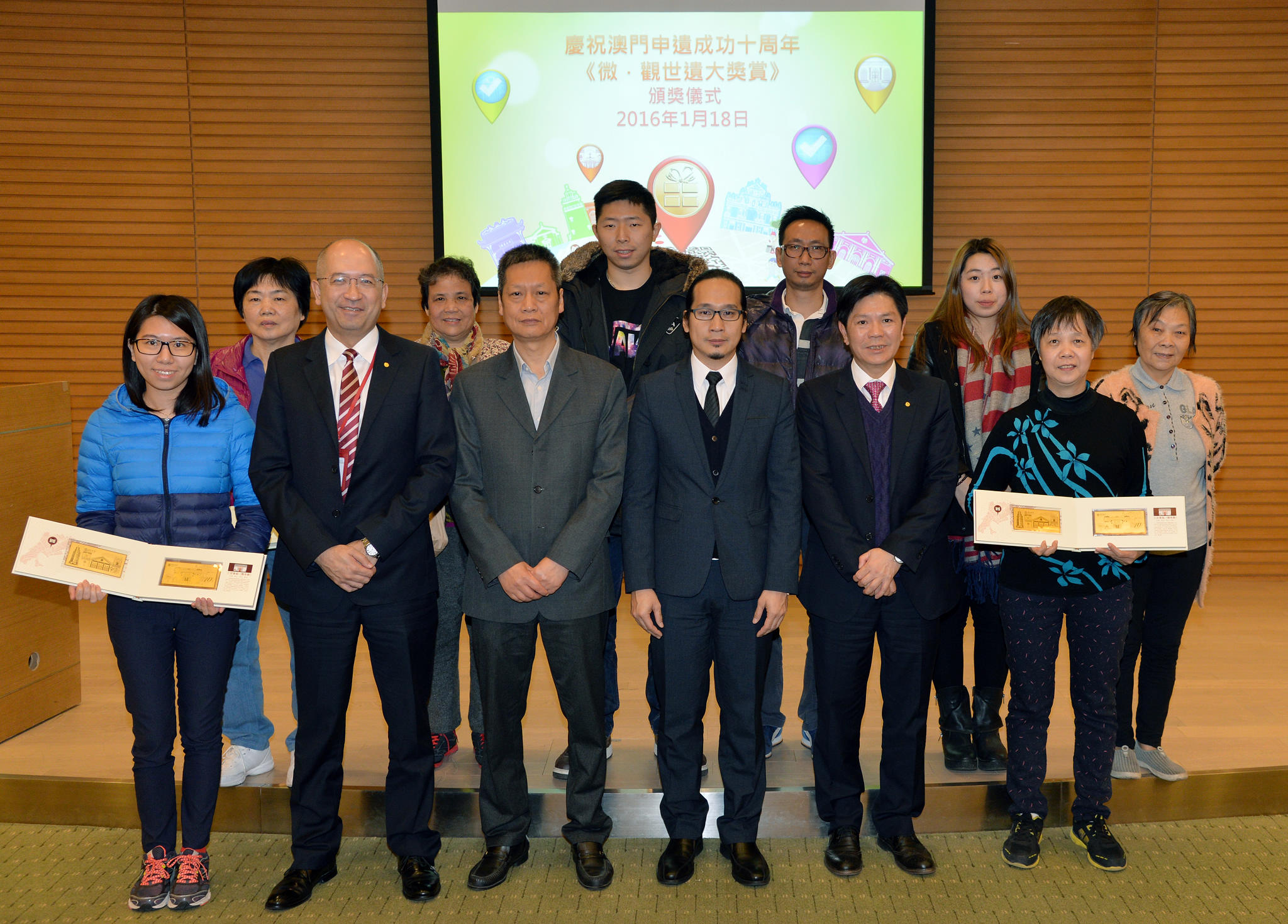 由文化局、澳門日報及中國銀行澳門分行合辦的“微.觀世遺大獎賞”已圓滿結束,成功吸引逾一千三百名市民及遊客參與。頒獎儀式於一月十八日在中國銀行大廈三樓大會議室舉行,文化局副局長陳炳輝、澳門日報總經理溫能漢、中國銀行澳門分行副行長葉兆佳及分行業務總監陳榮達等出席,向多名得獎者頒發“慶祝澳門申遺成功十周年”紀念金章及紀念金頁等豐富獎品。