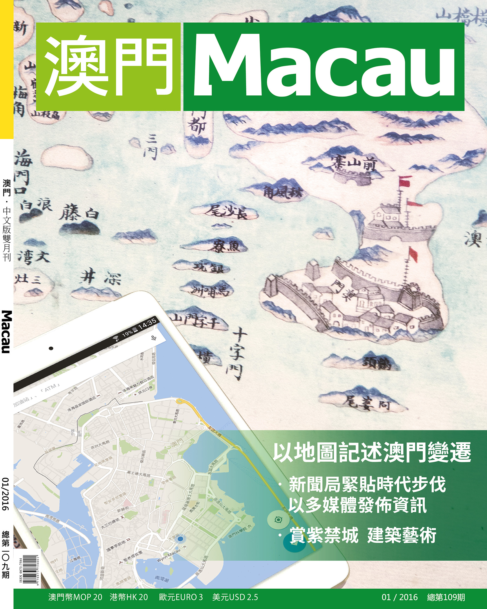 《澳門》雜誌(中文版)第109期現已出版。本期封面專題故事「以地圖記述澳門變遷」,以地點為脈絡,從不同方面看澳門在不同時代的發展和變遷。