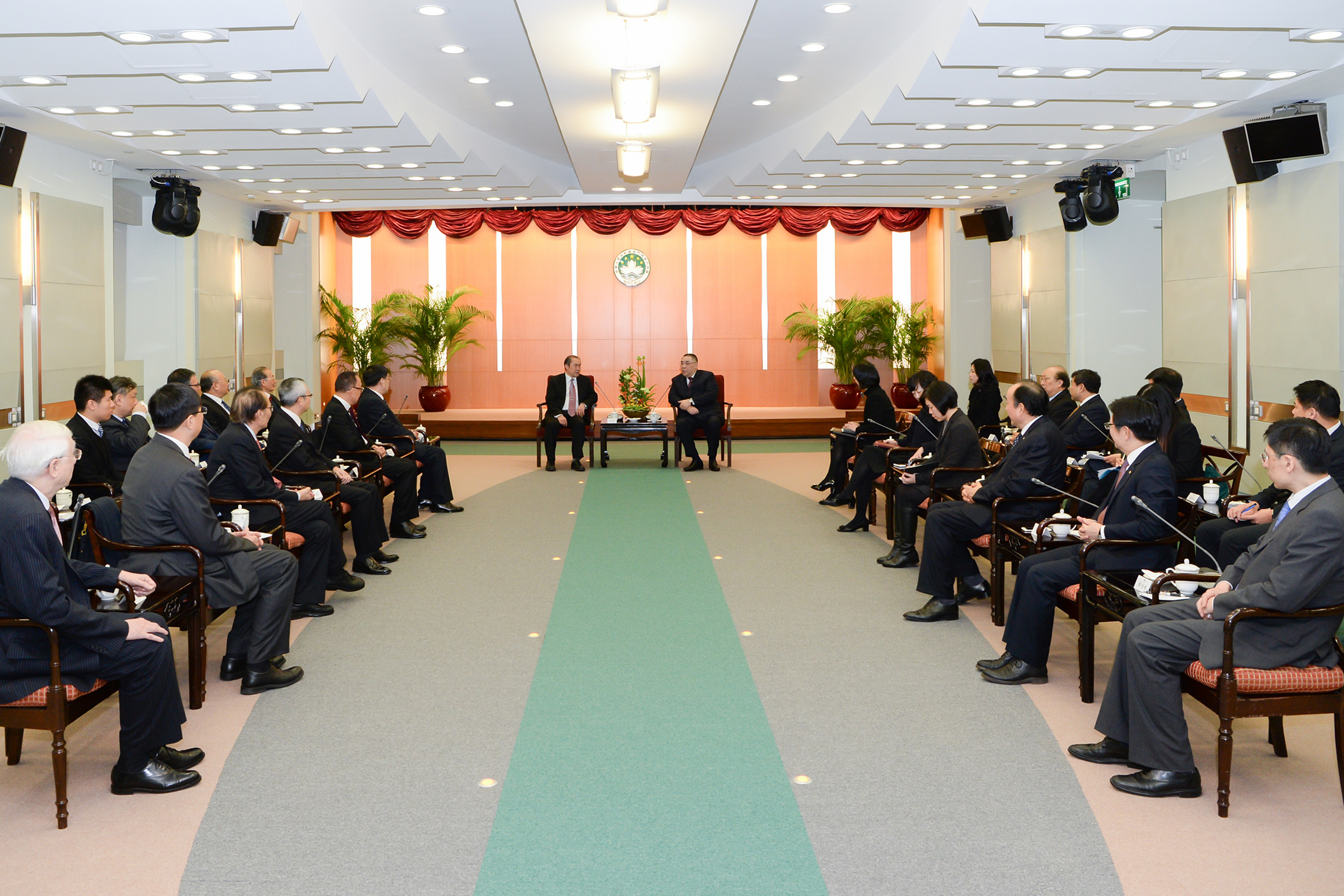 參加會面的包括行政長官辦公室主任柯嵐,以及澳門的中資企業、內地和本澳高等院校、學術研究機構領導等智庫成員。