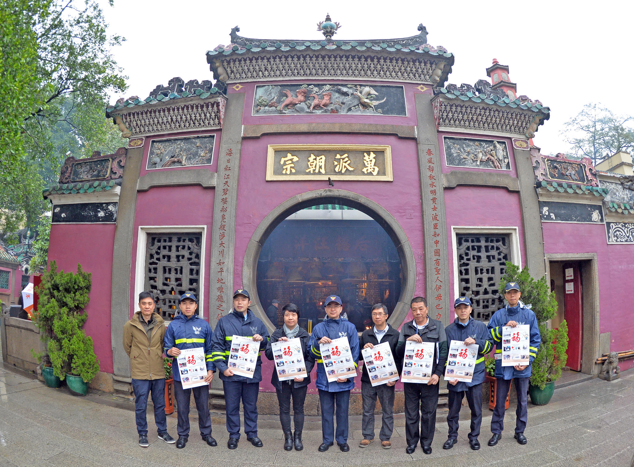 新春將至,澳門各廟宇必定香火鼎盛,為防範農曆新年期間廟宇發生火警,文化局及消防局兩局人員聯合巡查澳門及離島多間廟宇,今日(一月二十八日) 文化局文化遺產廳廳長梁惠敏、消防局技術廳廳長蔡惠濠及文化遺產保護處處長陳聰參與巡查,檢查消防設備,提醒廟宇管理者注意消防安全,並派發宣傳海報與單張,加強相關人員的安全意識。