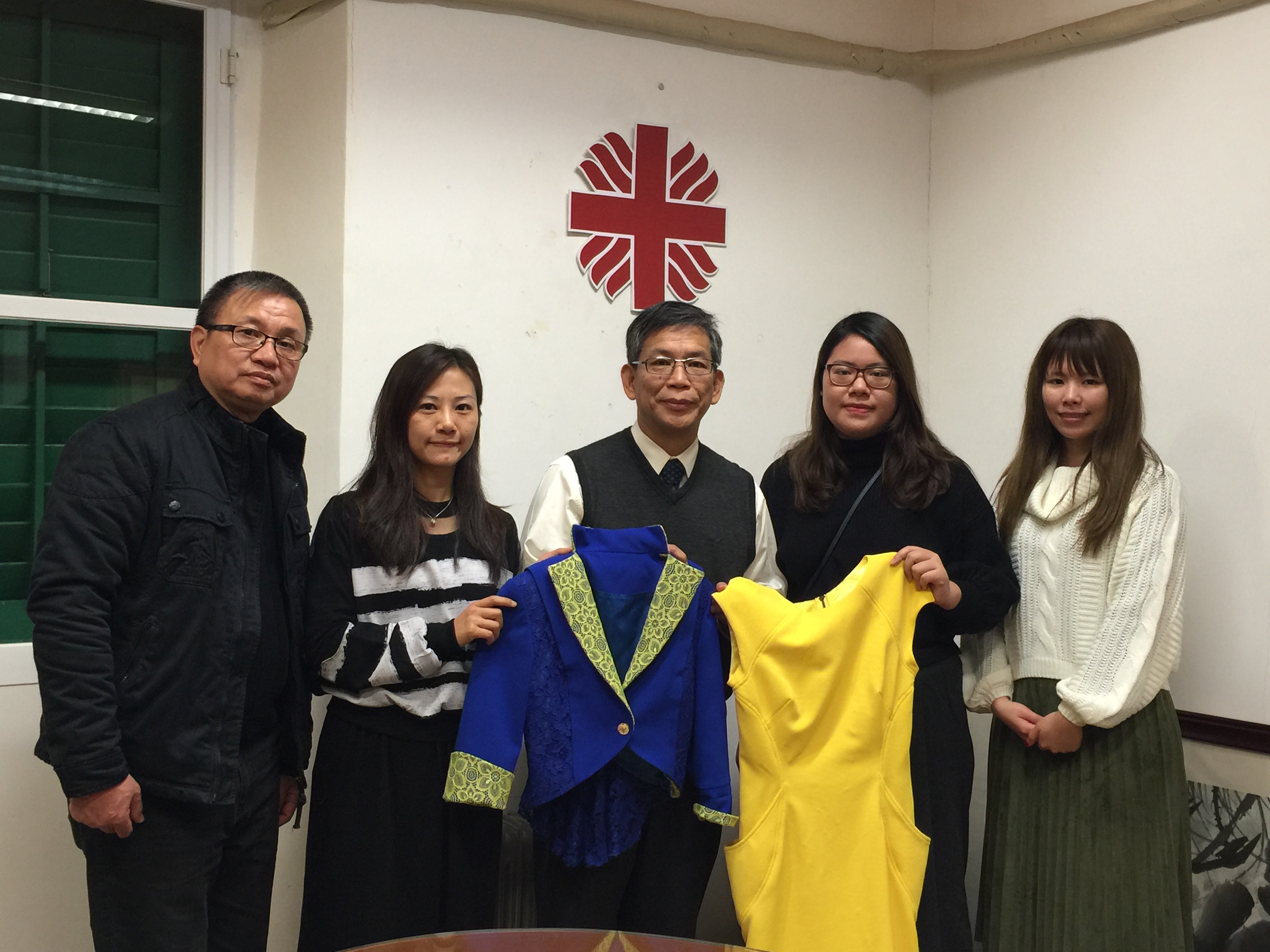 澳門生產力暨科技轉移中心贈送學員賽前培訓練習及已完成製作的服裝予明愛作慈善用途,由明愛總幹事潘志明親自接收,他勉勵學員努力,並繼續多關心社會弱勢社群。
