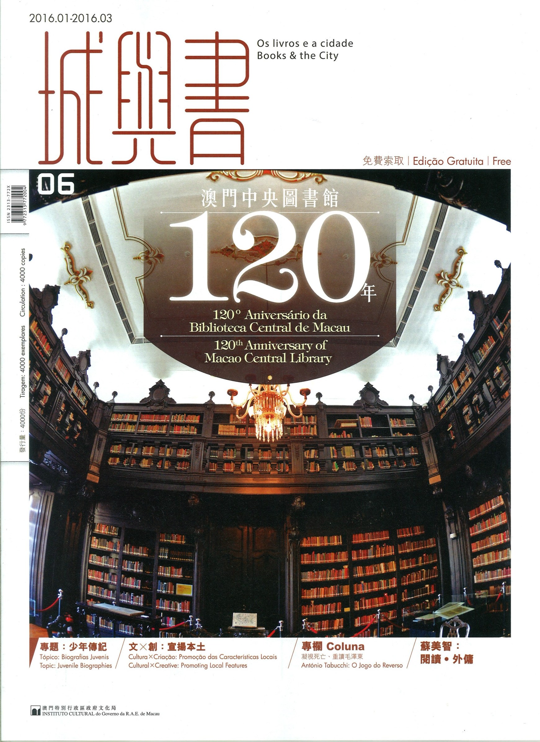 文化局澳門公共圖書館之館訊《城與書》季刊第六期已出版。去年適逄澳門中央圖書館成立120周年,本期館訊特此介紹圖書館多年來的演化變遷,同時訪問圖書資源發展處處長孔繁婷,進一步瞭解圖書館與工作人員共同成長的心路歷程。