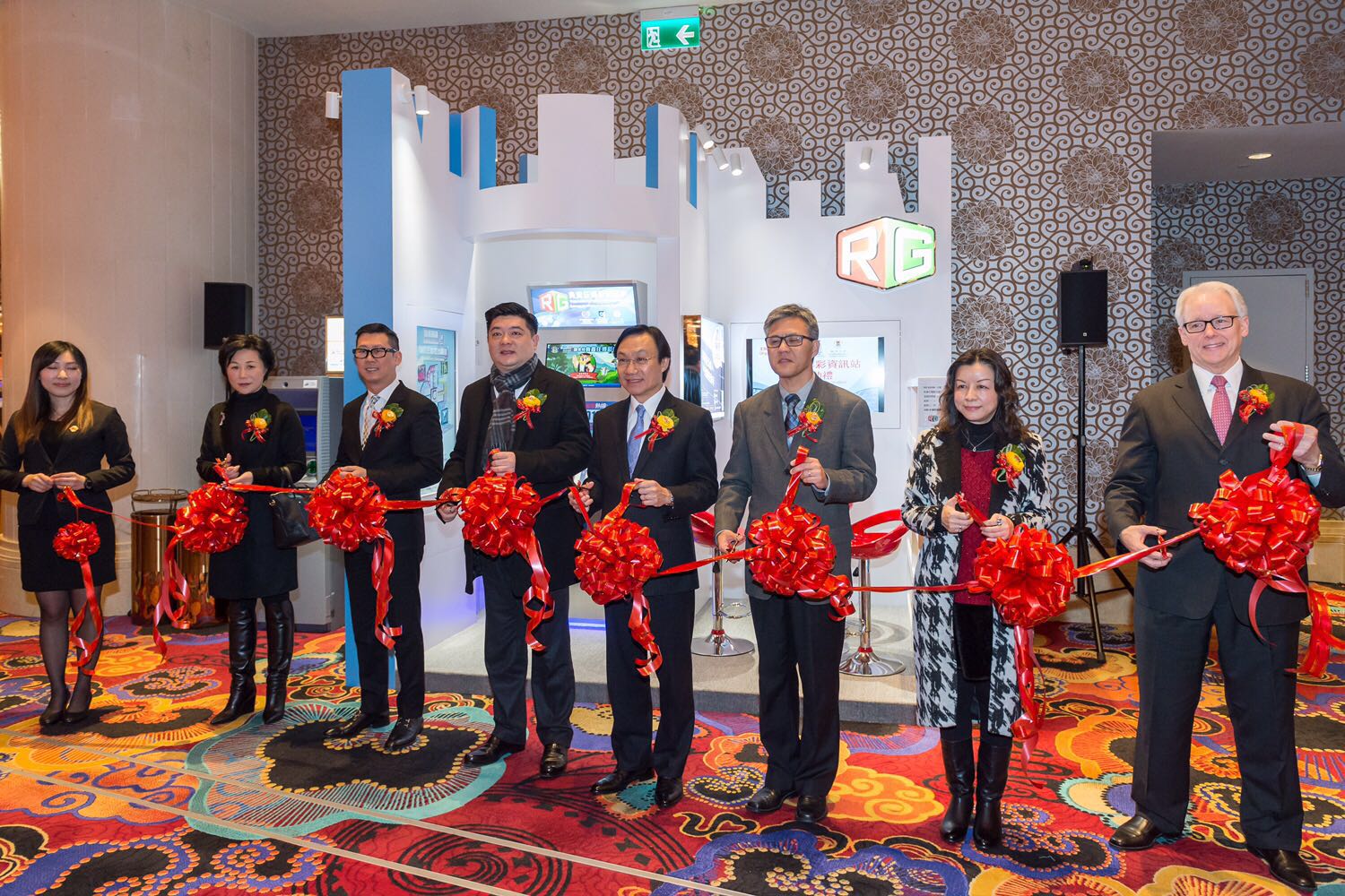 負責任博彩資訊站啓動禮剪綵儀式由社會文化司譚俊榮司長、新濠博亞娛樂高級顧問黃昇鴻先生、社會文化司司長辦公室葉炳權主任、博彩監察協調局陳達夫局長、社會工作局黃艷梅局長、澳門大學高薇副校長、新濠影滙總裁Mr. JD Clayton共同主持。