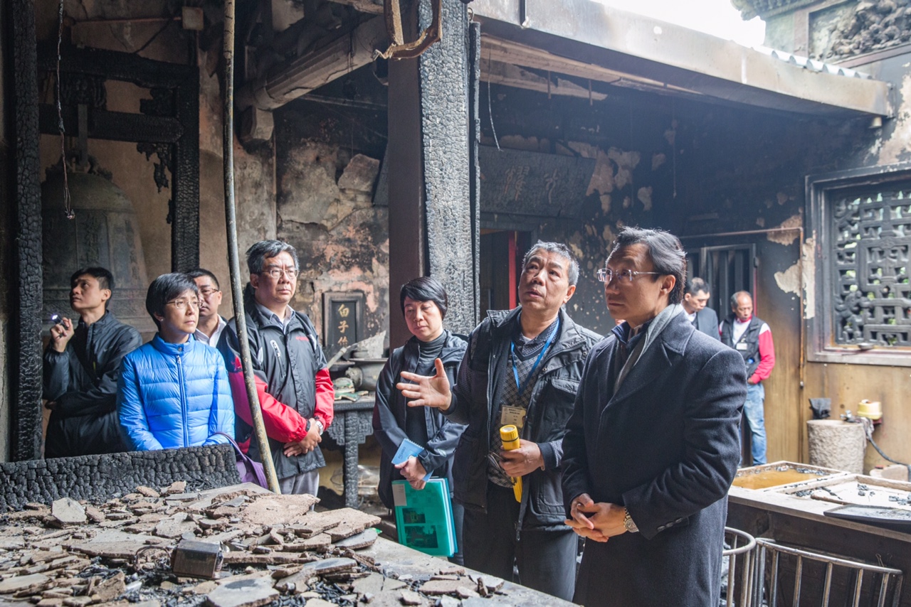 對於殿內的神案及牌匾遭到不同程度的焚燒,譚俊榮深感痛心惋惜。他嚴肅指出,應仔細查明是次起火原因,全面加強本澳各項文化遺產的保護,嚴防類似事件的發生。並指示文化局要再次對本澳各廟宇等進行安全檢查和宣導。