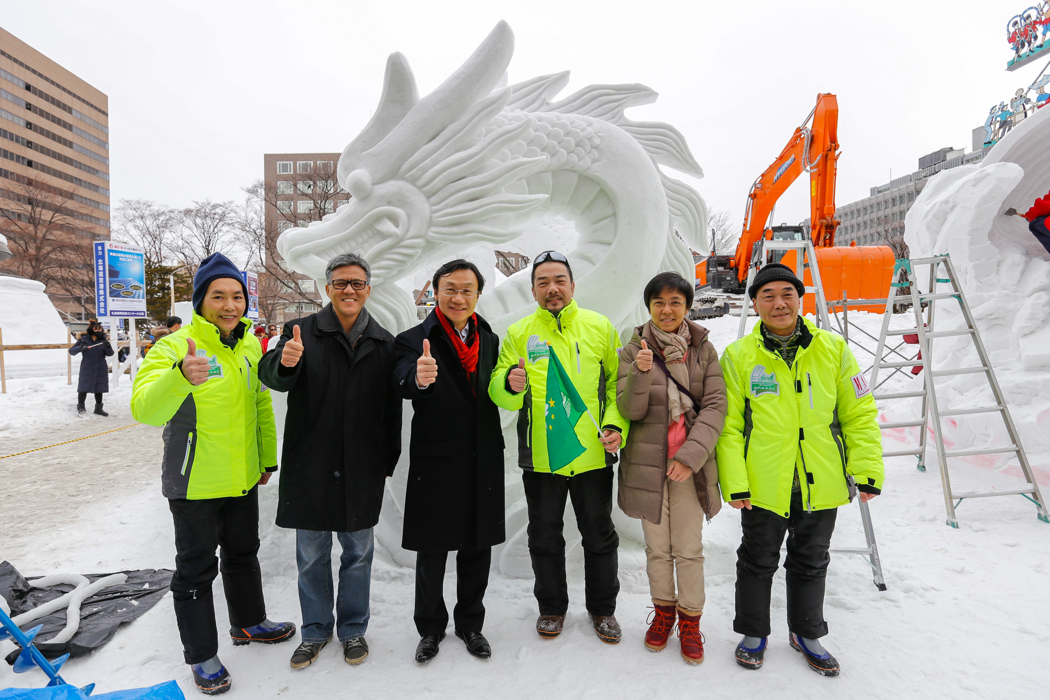 旅遊局今年首次參加“札幌冰雪節”,除了展出大三巴牌坊雪雕,特設光雕表演、澳門咖啡室、旅日澳門攝影師作品展及答謝晚宴,還邀請了澳門廚藝協會組成隊伍,代表澳門參加“第43屆國際雪雕比賽”,成員包括阮錦鴻、李慶祥及譚光湖。