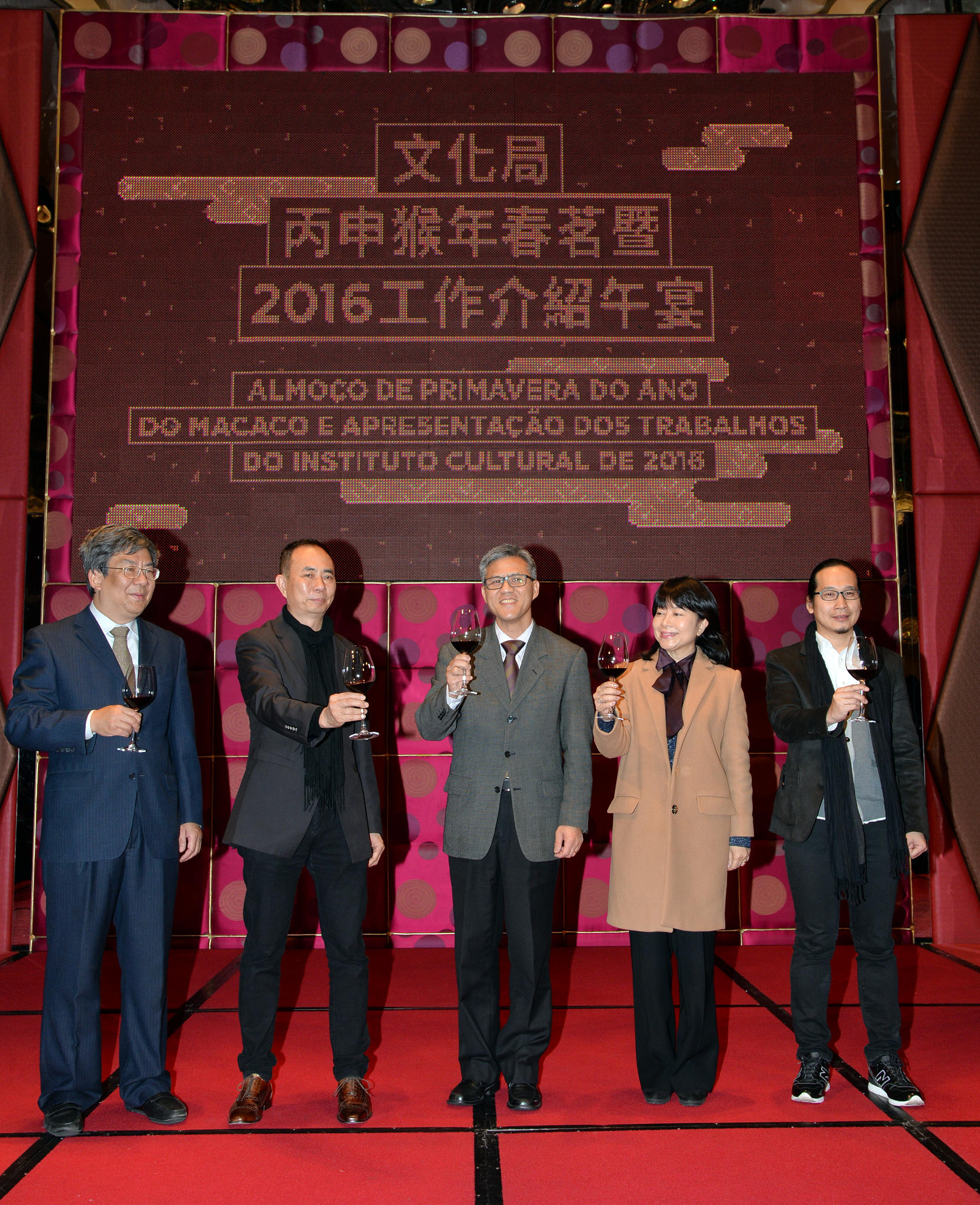 文化局於二月二十九日〈星期一〉假座澳門新葡京酒店舉行“文化局丙申猴年春茗暨二零一六工作介紹午宴”聚會,宴請文化諮詢委員會委員、文化遺產委員會委員,以及本澳中、葡、英傳媒及駐澳傳媒機構代表出席,介紹二零一六年文化工作計劃。