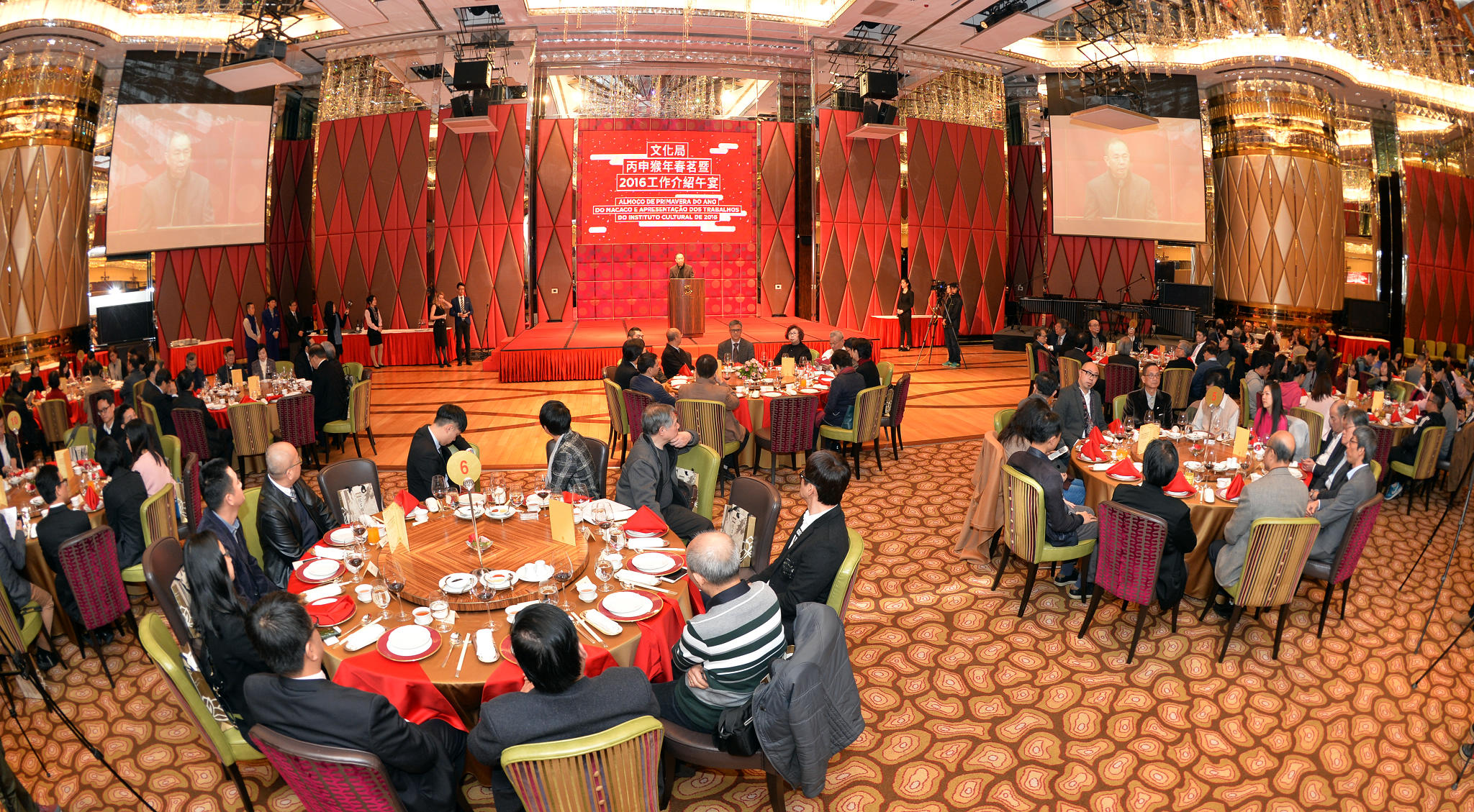 午宴上,局長吳衛鳴致辭回顧去年文化工作成果及來年工作亮點,並播放了新一輯宣傳短片《看得見的文化力量》,短片以文化是推動社會向前發展的一股重要力量為理念,分六個章節綜合展示文化局二零一六年的工作計劃,帶出澳門的文化力量是看得見的城市實力。
