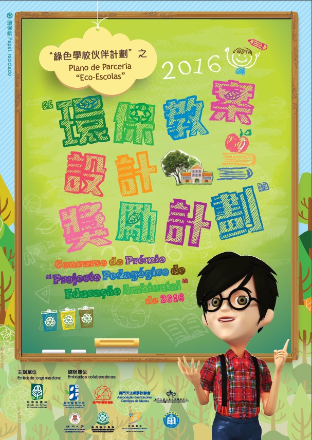環境保護局為推動學校深化環境教育工作,鼓勵老師設計適合澳門的環保教材,以及表揚學生積極參與校園環保活動,已於今年1月28日推出2016“綠色學校嘉許計劃”、2016“環保教案設計獎勵計劃”及2016“環保校園嘉Fun獎”,歡迎各綠色學校、現職本澳之教育界人士及現正就讀高等教育課程之本澳居民踴躍參與,共同提升澳門的環境教育。