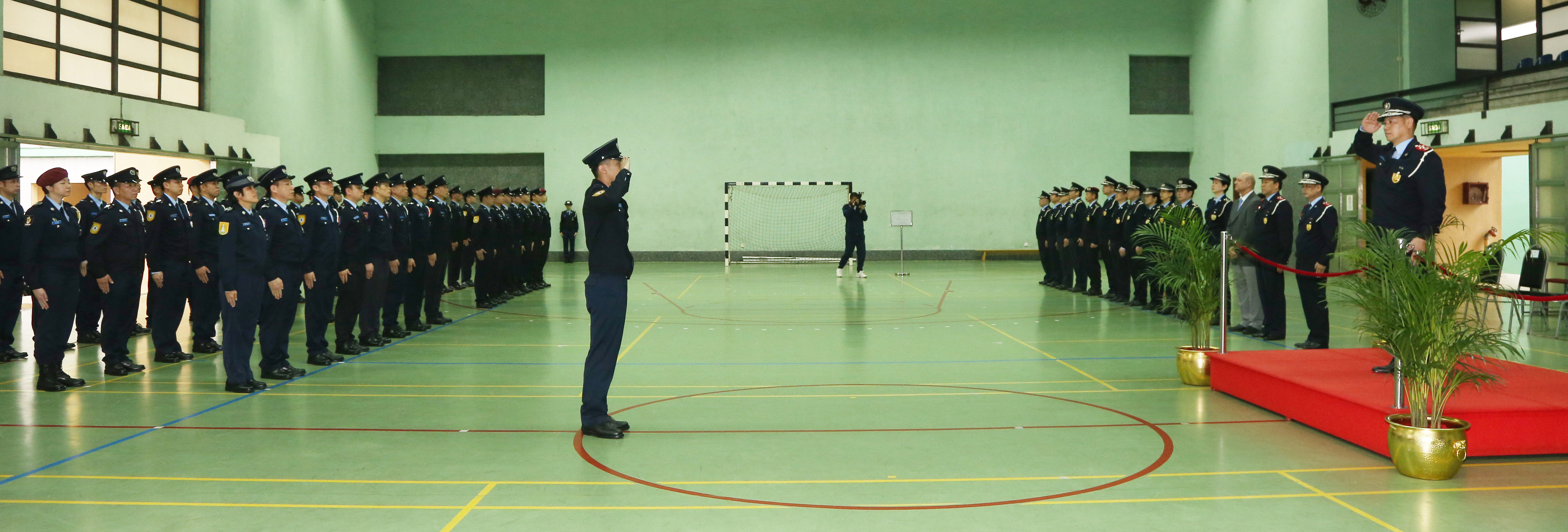 今天(4月15日)上午10時,在治安警察局特警總部室內運動場舉行了首席警員晉升儀式。儀式由治安警察局局長梁文昌警務總監、副局長吳錦華副警務總監及陳民德副警務總監主持。出席儀式的還有各部門的領導主管,為同僚晉升作出祝賀。