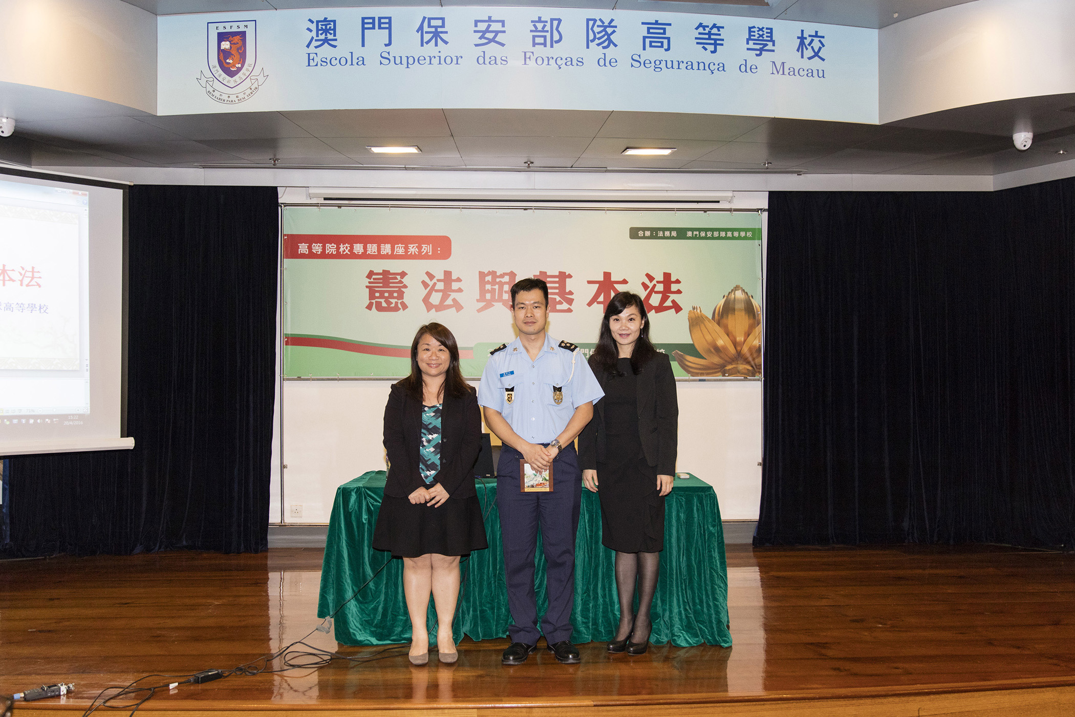 澳門保安部隊高等學校為本地培育專業的軍事化人員,為特區及市民大眾提供優質的服務。鑒於憲法與基本法對特區的重要性,法務局和保安高校期望藉由專題講座,讓學員能正確理解兩法及相互關係。