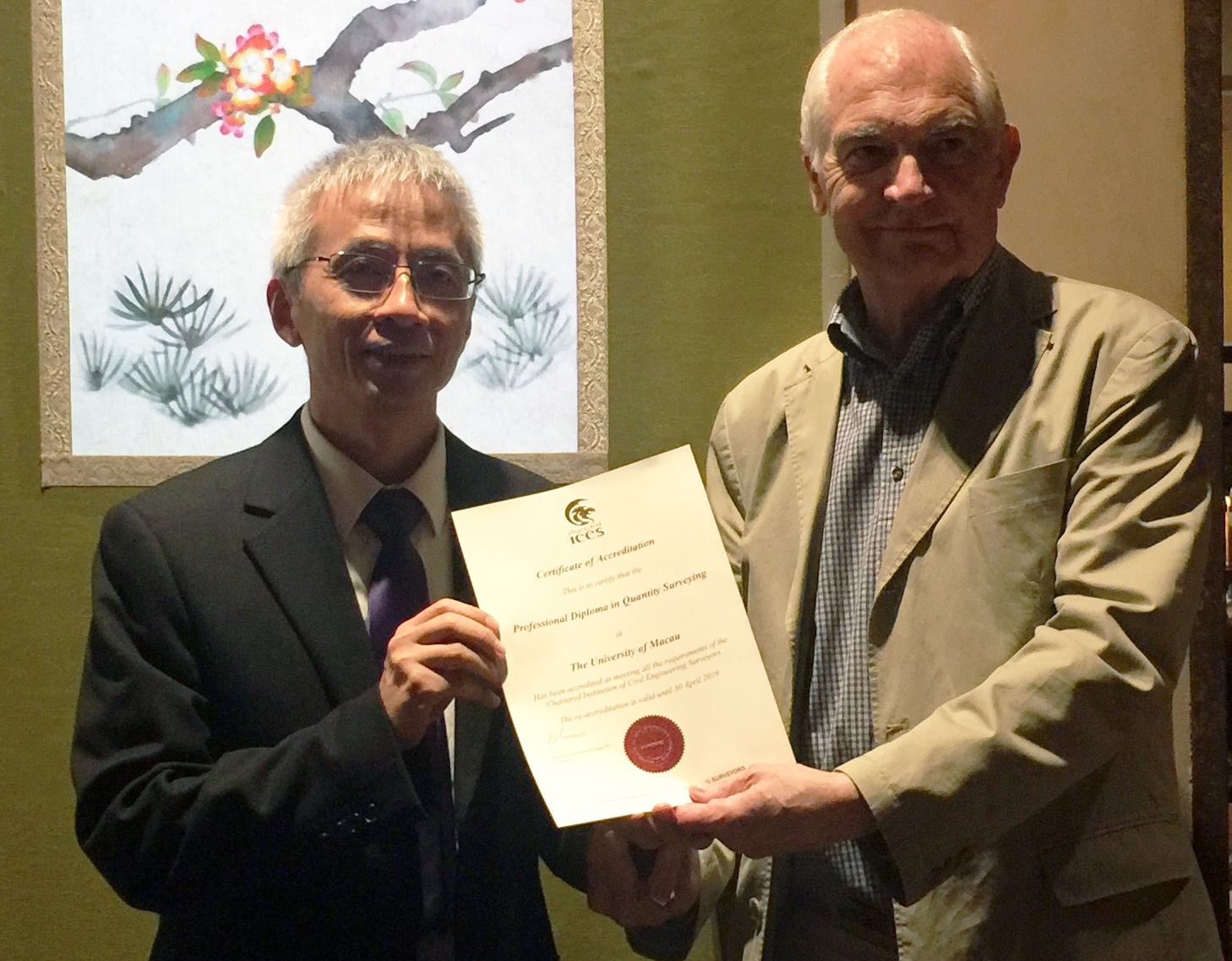 澳門大學持續進修中心開辦的《工料測量專業文憑課程》獲英國皇家特許土木工程測量師學會頒發國際專業認證,課程受國際肯定。該課程有助澳門建築工程業界自我提升的需求及與國際接軌。