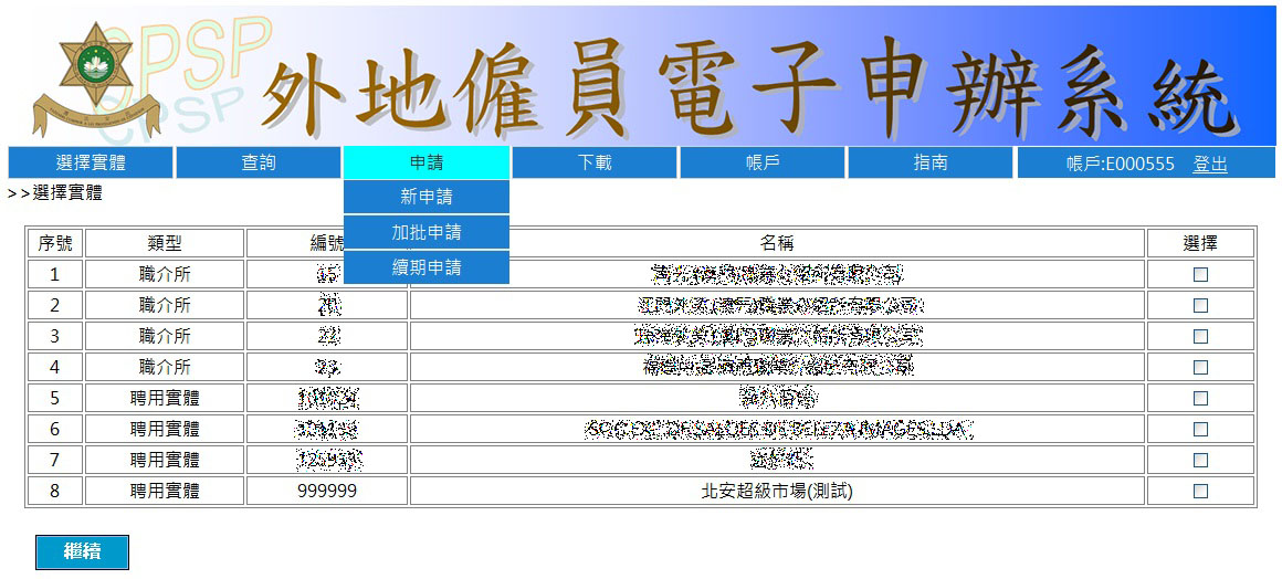 為積極配合政府電子政務的發展,提高行政效率,加強訊息化建設,以提供更便捷和優質的服務,治安警察局出入境事務廳將於2016年5月3日,在原「外地僱員電子申辦系統」的基礎上,推出第二階段網上申請服務-非專業類「外地僱員逗留許可」網上新申請服務,此項服務手續的審批時間由以往的5個工作日縮減至4個工作日,提升申辦效率。本項服務的對象主要是僱主實體及獲僱主實體授權的職業介紹所,申請沒有時間及數量限制。倘首次使用「外地僱員電子申辦系統」,僱主實體或代理職業介紹所須填妥《代辦手續人員登記表》(http://www.fsm.gov.mo/psp/cht/pdf/psp_top6/CTNR-M22.pdf),然後憑該登記表到治安警察局出入境事務廳外地勞工事務警司處申請「外地僱員電子申辦系統」電子帳號,合資格者將獲發一個用於登入上述系統以辦理各項申請手續的用戶名及密碼。已授權職業介紹所申辦手續之僱主實體,無需另行申請開通「外地僱員電子申辦系統」電子帳號。