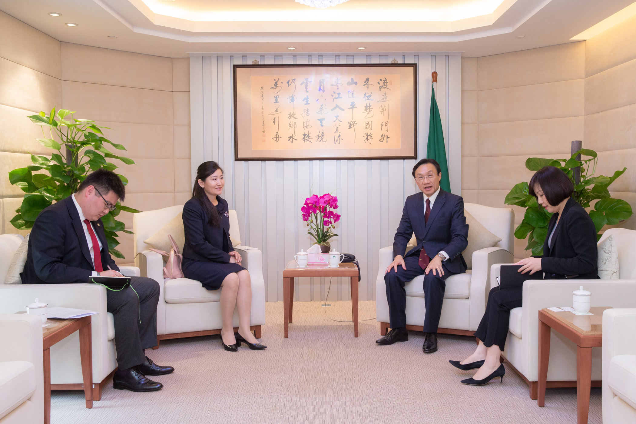 會見中,歐特根扎兒嘎樂女士表示,喜見澳門特區近年在社會文化範疇的工作成效顯著,希望加強蒙古國與澳門特別行政區之間在旅遊、教育、醫療、文化及體育等方面的交流合作。