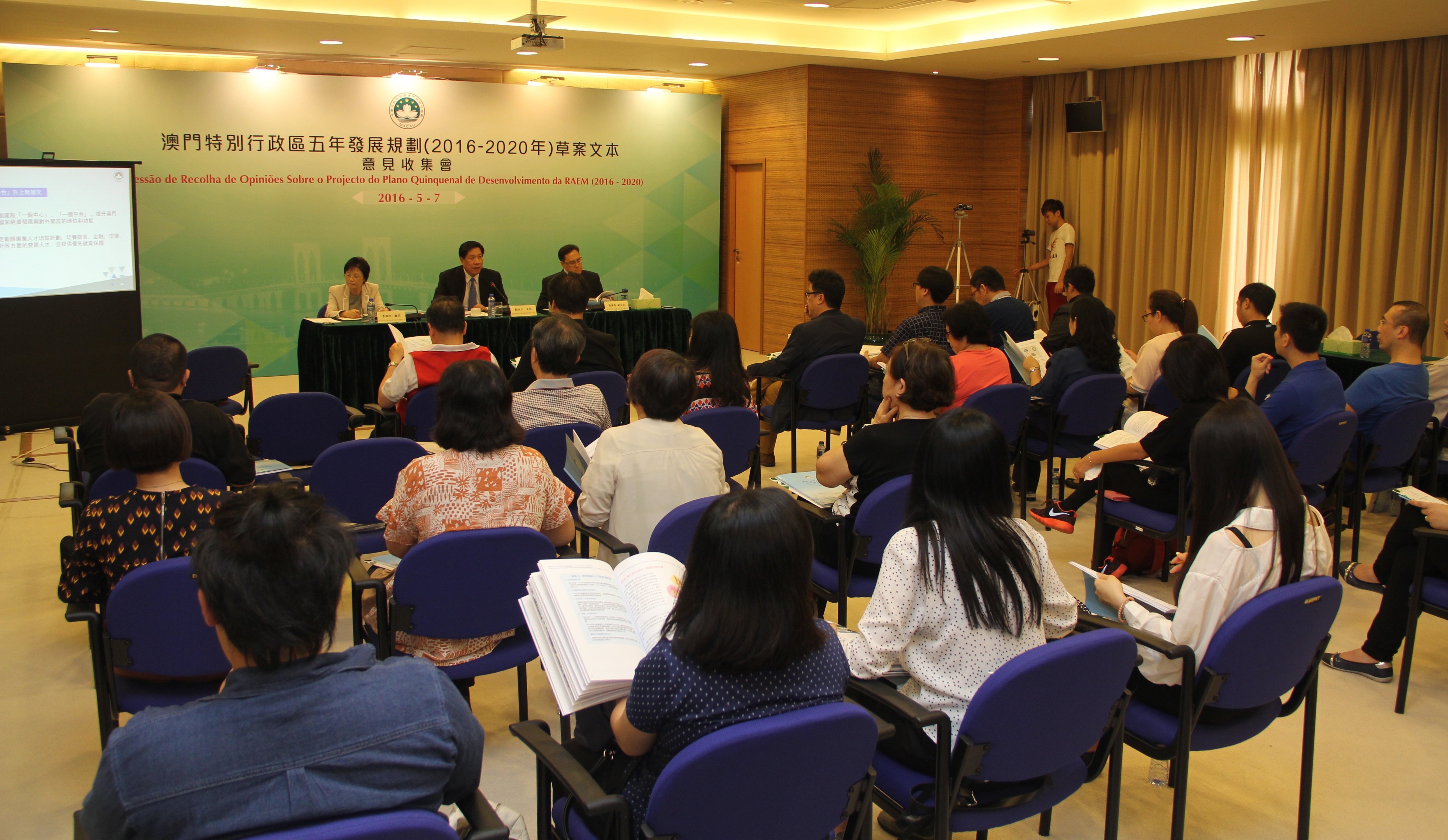 《澳門特別行政區五年發展規劃(2016-2020年)草案文本》於4月26日公佈並展開為期兩個月的意見收集工作。五年發展規劃是未來五年特區經濟社會發展的總體藍圖,是政府與廣大居民共同努力的行動綱領。因此,廣泛聽取社會各界意見、凝聚民智、匯合民力,對於五年發展規劃的制定和實施是相當重要的。為此,專責本次意見收集工作的政策研究室今日(7日)於政策研究室進行澳門工會聯合總會專場的意見收集會。