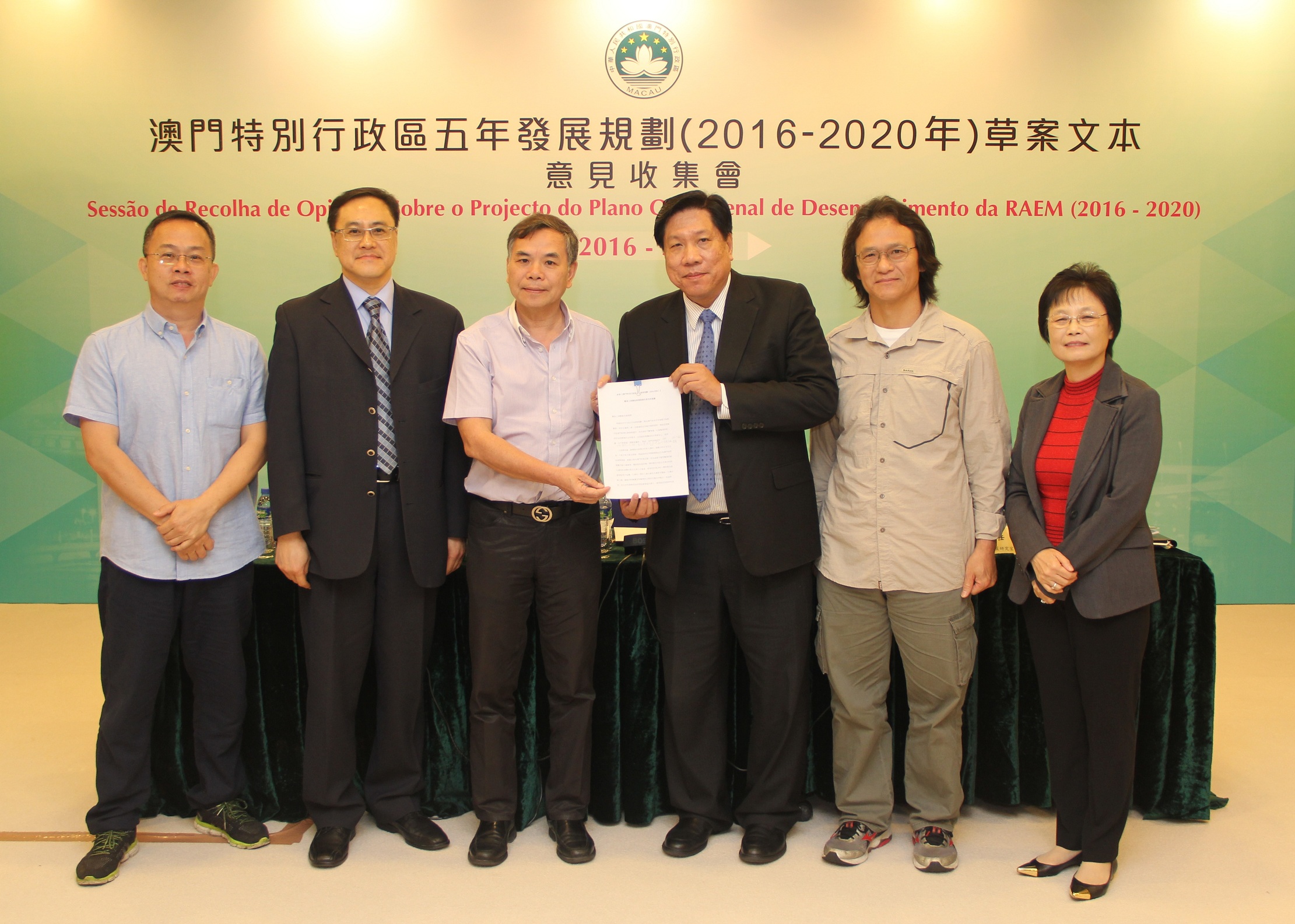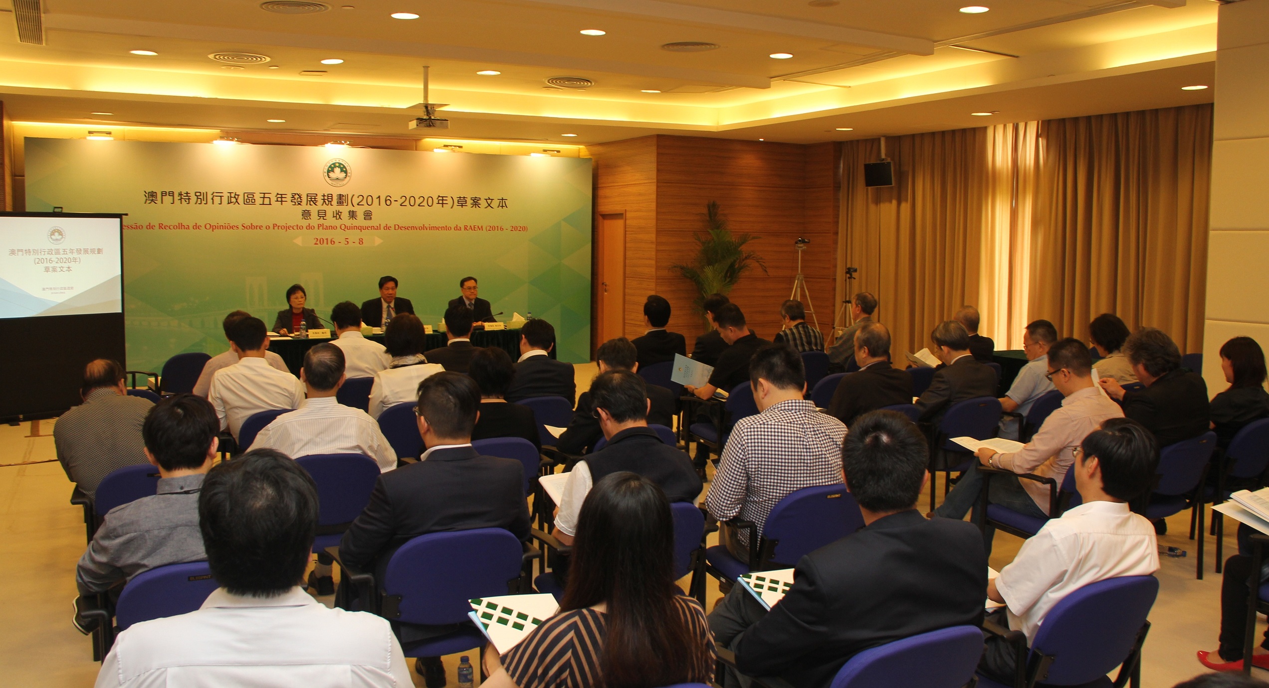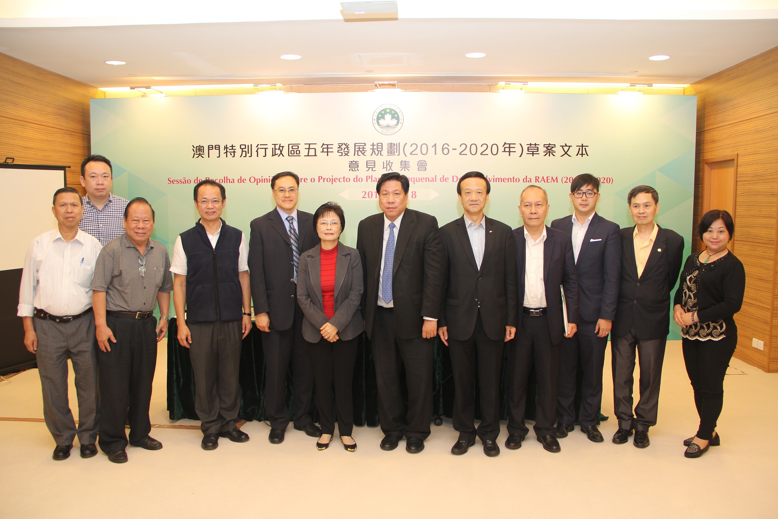《澳門特別行政區五年發展規劃(2016-2020年)草案文本》於4月26日公佈並展開為期兩個月的意見收集工作。五年發展規劃是未來五年特區經濟社會發展的總體藍圖,是政府與廣大居民共同努力的行動綱領。因此,廣泛聽取社會各界意見、凝聚民智、匯合民力,對於五年發展規劃的制定和實施是相當重要的。為此,專責本次意見收集工作的政策研究室今日(8日)於政策研究室進行街總、婦聯、僑總及各區工商聯會專場的意見收集會。