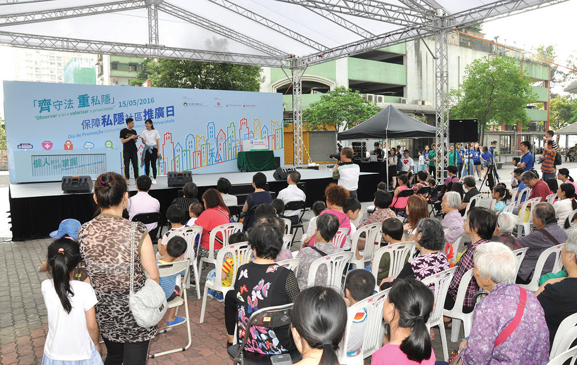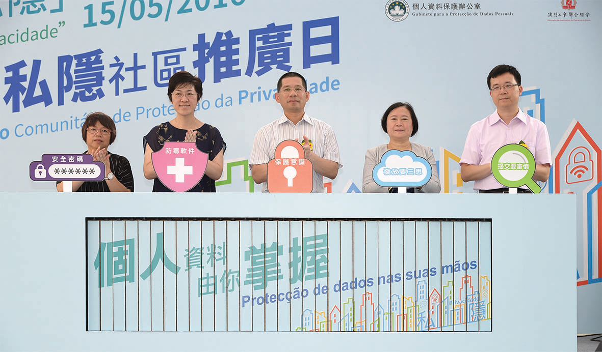 個資辦與澳門街坊會聯合總會、澳門工會聯合總會及澳門婦女聯合總會合辦的“保障私隱社區推廣日”活動,於5月15日下午3時半假筷子基綠楊花園休憩區舉行,個人資料保護辦公室主任馮文莊、澳門街坊會聯合總會理事長吳小麗、澳門婦女聯合總會副會長黃敏兒、澳門工會聯合總會社區服務總監蕭紹雯,以及個人資料保護辦公室副主任楊崇蔚主持開幕儀式。現場除了舞台表演外,還設有“個人資料保護知多少”展覽和攤位遊戲,透過多元化的方式加強市民對相關法律的認識,提升個資保護的意識,避免誤墮私隱陷阱。