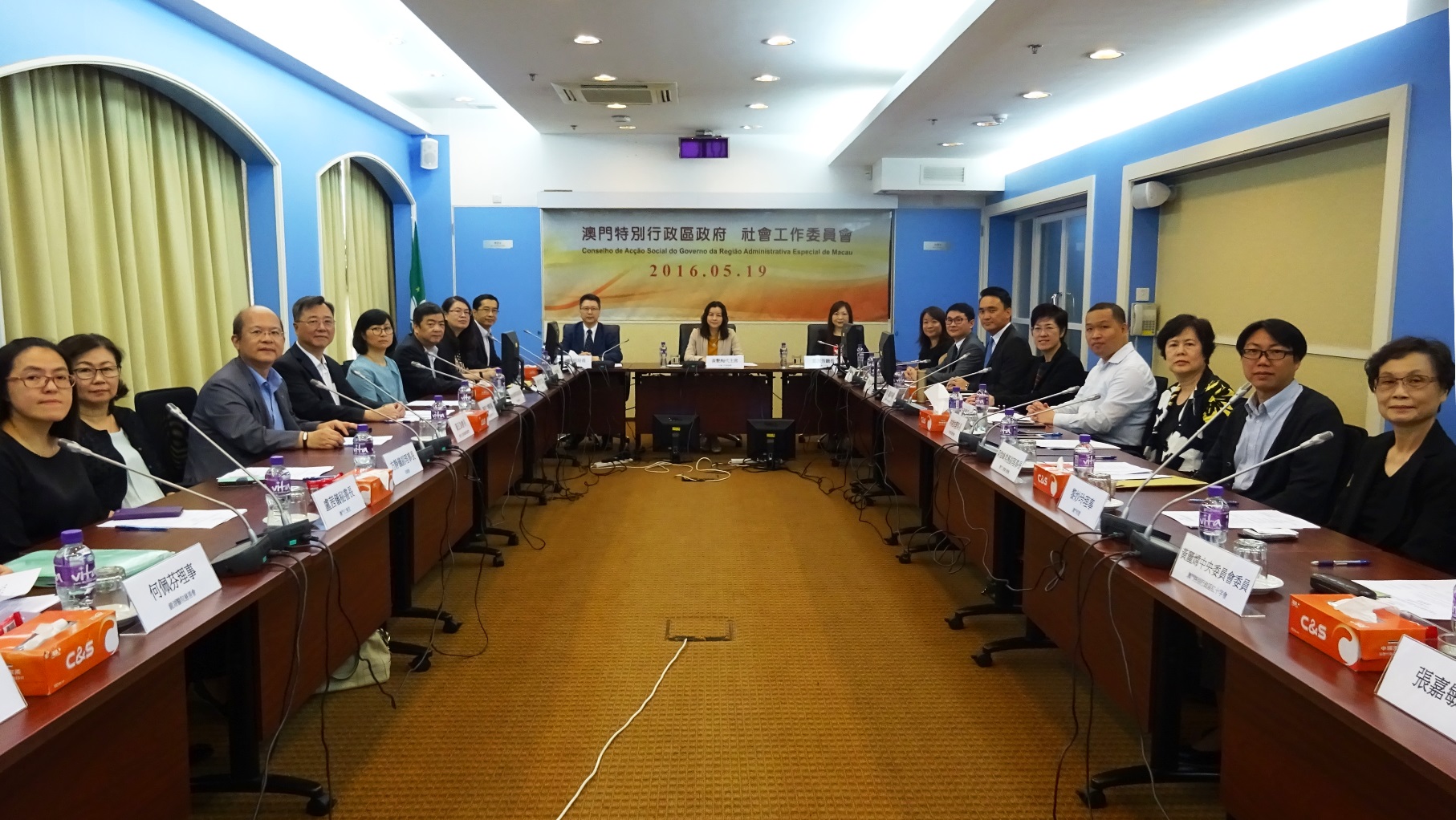 社會工作委員會於2016年5月19日在社會工作局新寶大廈一樓會議廳舉行本年度第二次全體會議,由社會工作委員會代主席、社會工作局黃艷梅局長主持。主要議程包括:簡介《社會工作委員會內部運作細則》、簡介審議社會服務界別法人確認申請/續期申請流程及評審準則、審議2宗社會服務界別法人確認申請及1宗續期申請等。