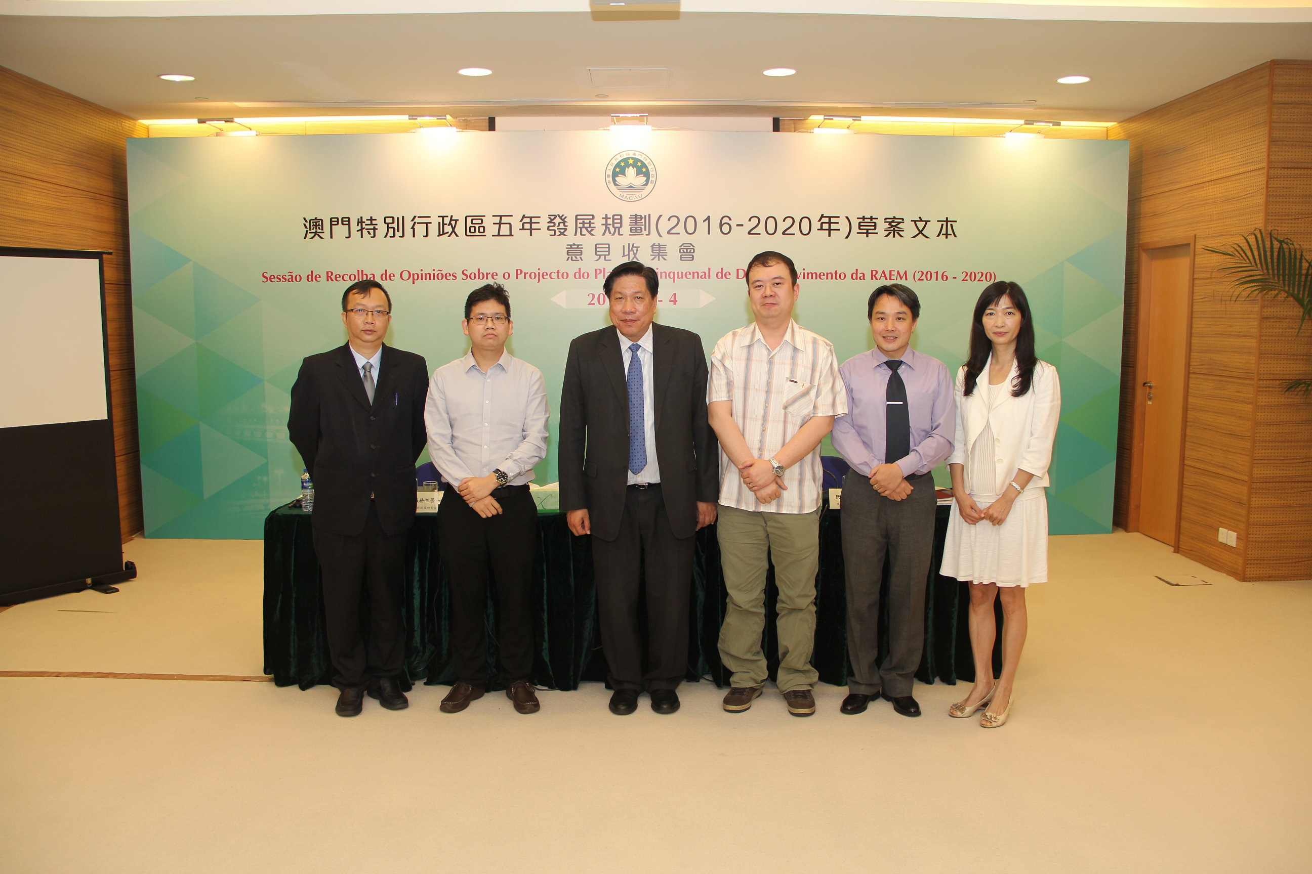 《澳門特區五年發展規劃(2016-2020年)草案文本》於4月26日公佈並展開為期兩個月的意見收集工作。五年發展規劃是未來五年特區經濟社會發展的總體藍圖,是政府與廣大居民共同努力的行動綱領。在編制過程中,得到國家發展和改革委員會規劃司、清華大學和澳門理工學院幾個顧問團隊的義務指導。
