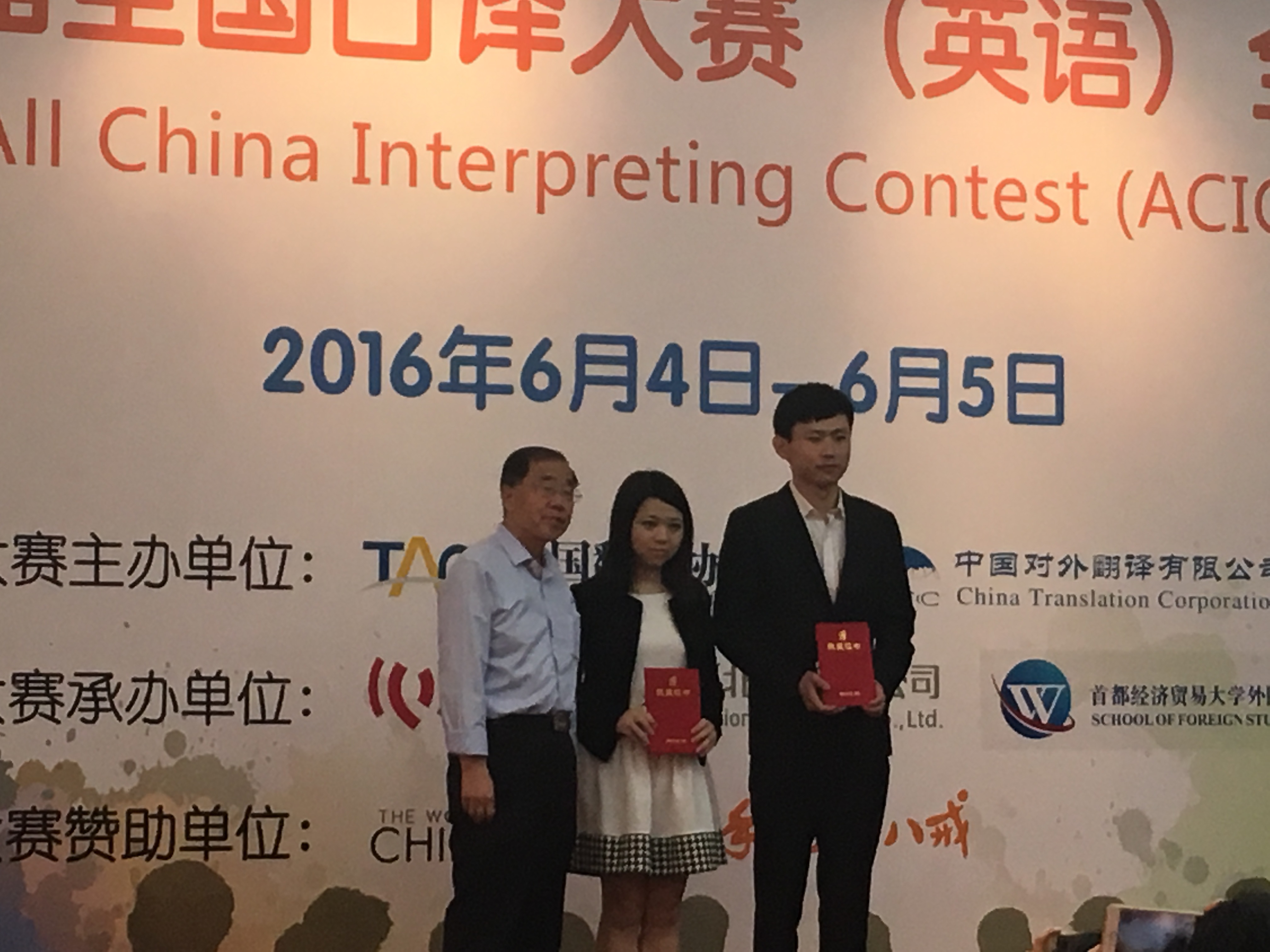 全國口譯大賽(英語)是國內級別最高、影響力最大、業界最為關注的翻譯賽事。今屆比賽有來自全國439所高校共1814名選手參與。大賽於去年12月底啟動,歷經初賽、複賽、大區決賽等三輪角逐嚴格篩選,全國八大賽區(華北、華中、華南、華東、西南、西北、東北和港澳台)的優勝者雲集北京經濟貿易大學,在個人交替傳譯、個人同聲傳譯,以及團隊交替傳譯全國總決賽進行決戰。