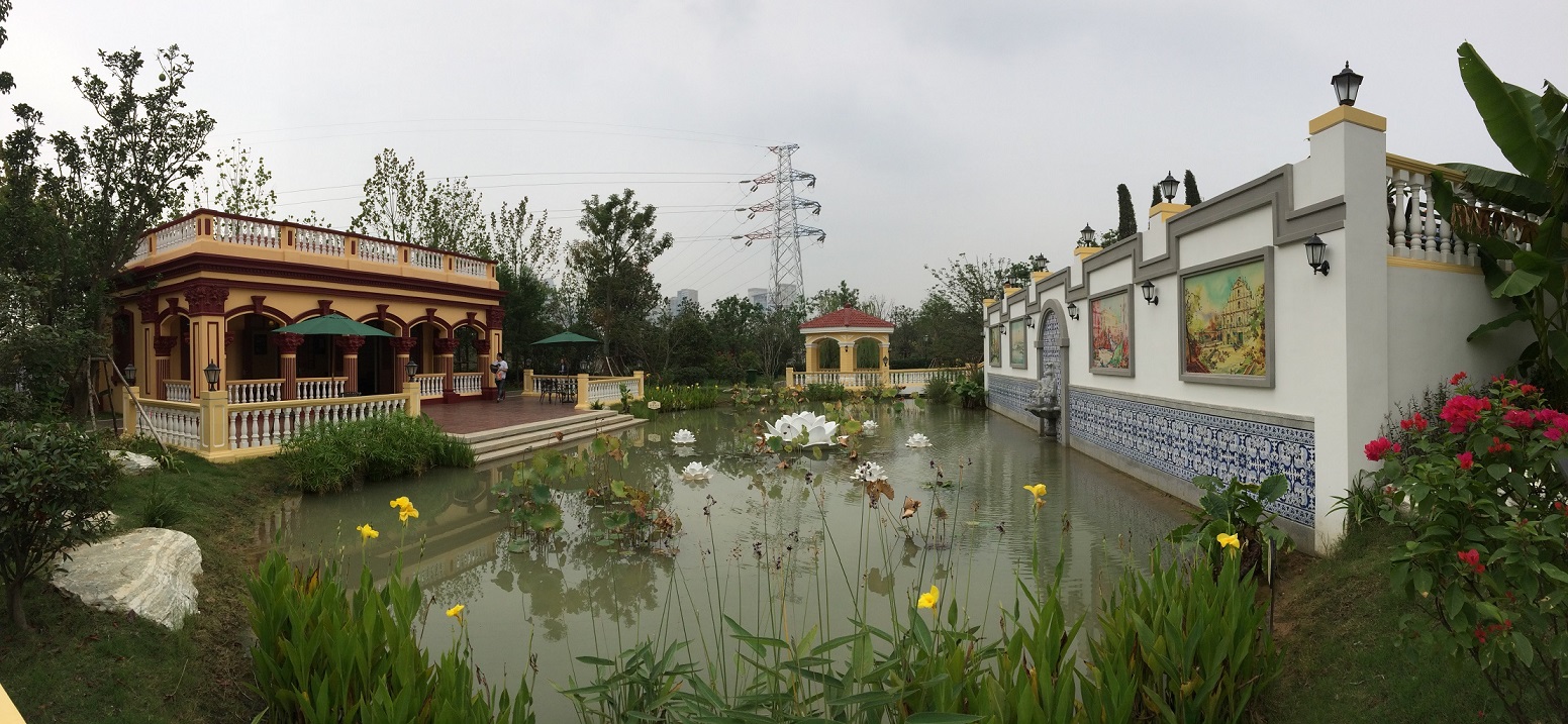 澳門園以“中西共融、多彩家園”為主題,透過景觀手法及合理佈局,將具澳門代表性的建築及特色元素如大三巴牌坊、葡式建築物、蓮花、雕塑、水池及壁畫等融入其中,建造一個富優雅恬靜氣氛的中西合璧庭院,展現澳門四百多年中西文化的共融及多姿多彩的風情。