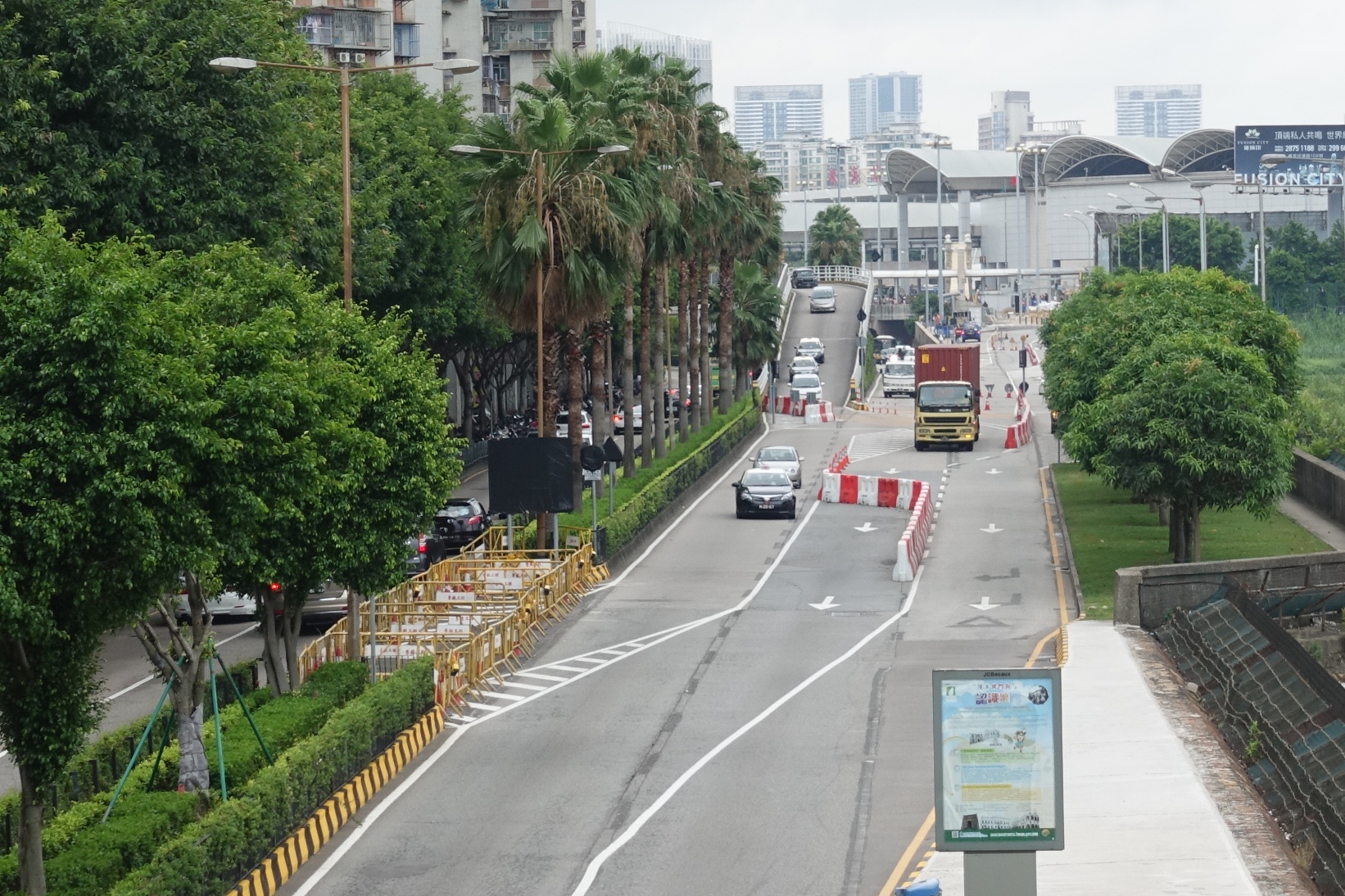 隨著關閘廣場東側旅遊車上落客區的重整工程已進入尾聲,且已局部開放予酒店及娛樂場客運專車進場使用,交通事務局亦於8月10日(周三)上午11時起開通馬場北大馬路的重型客車專用通道,屆時,重型客車可由馬場北大馬路直接進入關閘廣場東側的道路及上址的旅遊車上落客區,無須繞行關閘行車隧道。由於現階段旅遊車上落客區尚未完全竣工,故暫時有關旅遊車上落客區只局部開放予酒店及娛樂場客運專車進場使用,旅行社客車和其他旅遊車暫時需使用沿特警總部外圍路段的路邊位上落客,至於持兩地牌輕型汽車則可使用關閘廣場上新開設的停車位上客;另外,設於馬場北大馬路行車天橋出口的交通燈系統亦會同步啟用,以合理分配各方車流的行進時間。