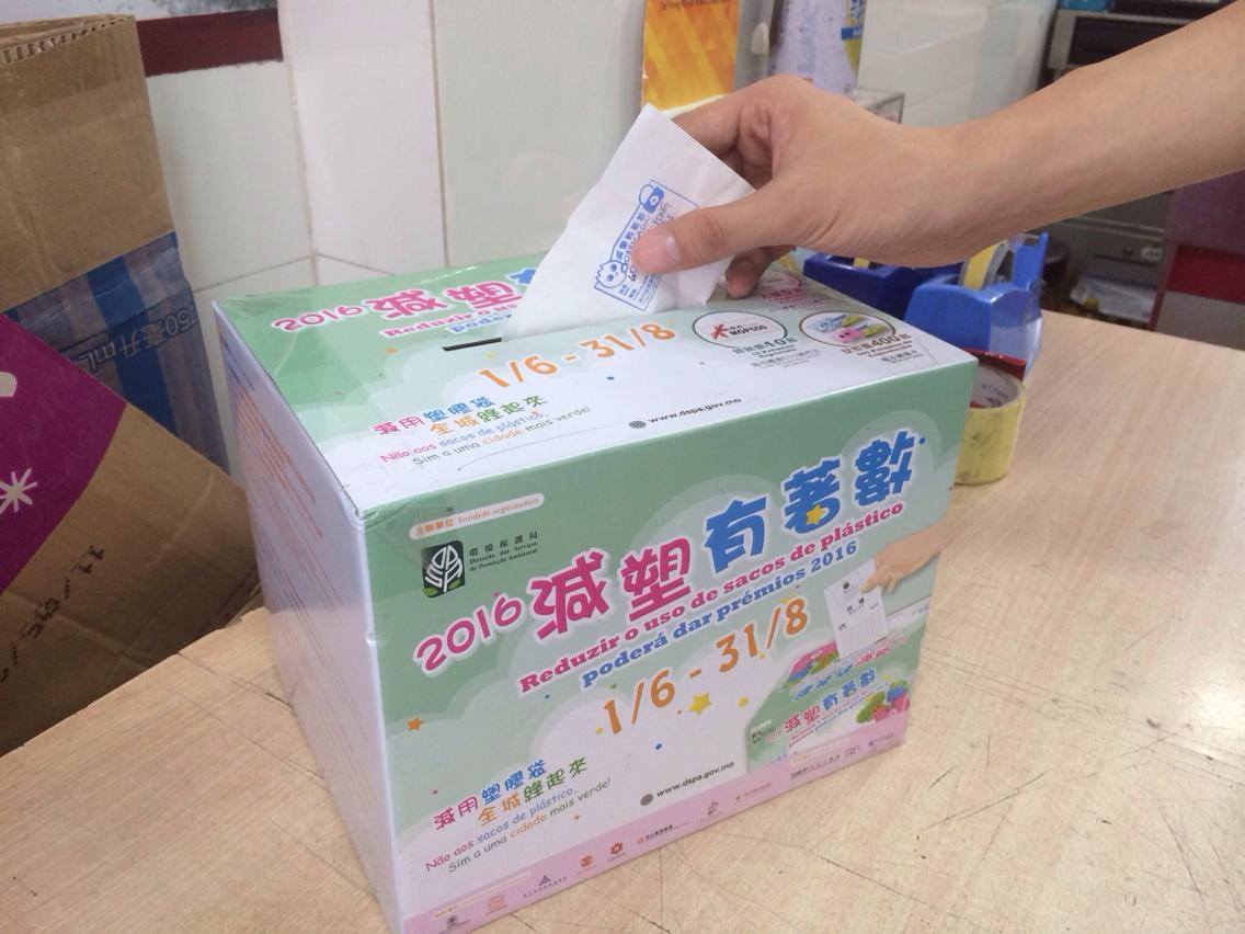 另環境保護局為鼓勵澳門居民購物時減少使用膠袋、自備購物袋,聯同多個部門、社團和商號推出的「2016減塑有著數」活動,活動期間居民到參與商號購物時不索取膠袋,並將填妥資料及蓋有指定印章的商號收據投入指定的收件箱內即可參加抽獎,有關活動將於8月31日截止收件。