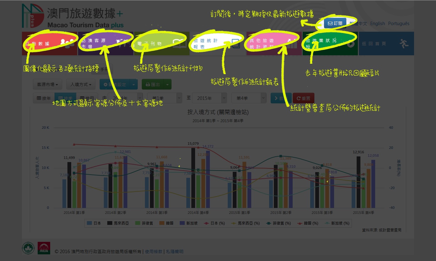 2. 訂閲功能:有興趣的使用者可定期收取最新的澳門旅遊數據資料;