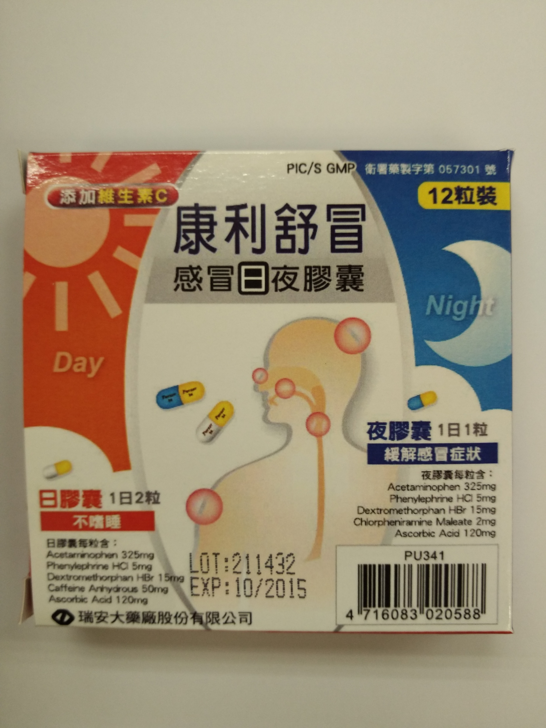 根據台灣食品藥物主管機構的公告,當地藥物生產商瑞安大藥廠股份有限公司所生產3個批次(批號為 4321、4324、4327)的綜合感冒製劑“康利舒冒感冒日夜膠囊(Cold-Free Day & Night Capsules)”,由於藥物的長期穩定性試驗結果顯示其中一種主成份含量低於質量標準,因此該生產商自願回收上述批次藥物。