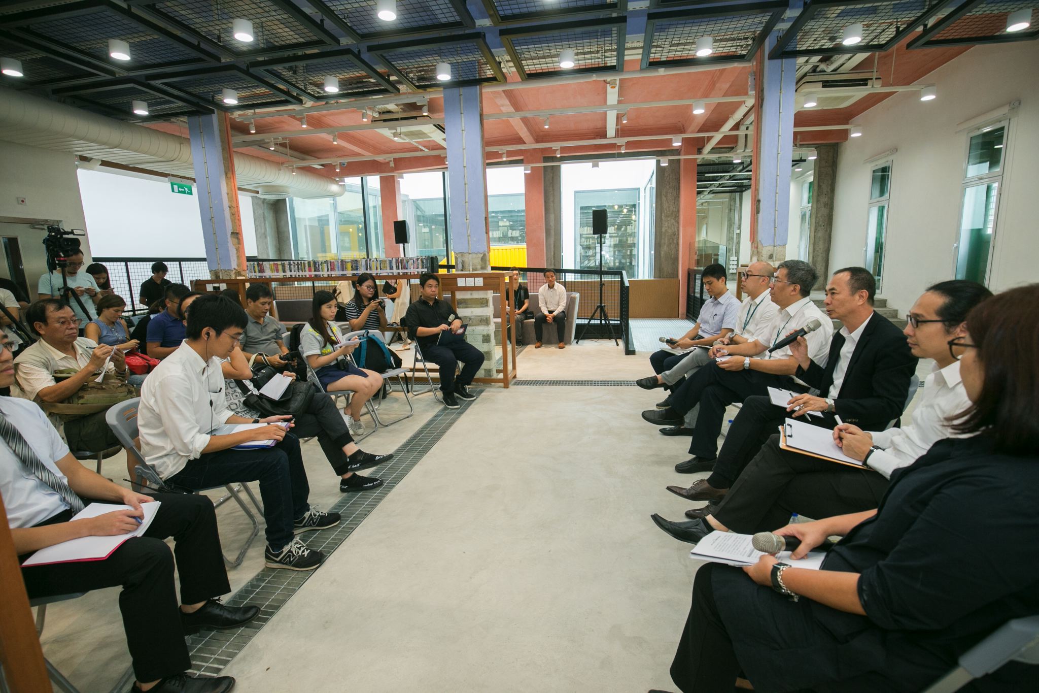 文化局局長吳衛鳴、副局長梁曉鳴與陳炳輝、公共圖書館管理廳廳長鄧美蓮、演藝發展廳廳長楊子健及文化遺產保護處處長陳聰等出席活動。交流活動上,文化局向傳媒介紹公共圖書館工作及服務。其中沙梨頭圖書館將計劃於十二月開放使用,該館佔地約一萬一千平方尺,由沙梨頭海邊街七座具八十多年歷史的建築物組成,通過整理、加固修復和圖書館建設三個階段,完整保留圖書館立面,其中三座建築物在内部作出加固和補強,保留部分結構,達成新舊建築的融合。沙梨頭圖書館樓高三層,將提供約二百個讀者座位。除具備報章雜誌閲覽區、兒童圖書區和讀者自助服務設施等基本功能外,該館以電影及音樂為主題,設有多媒體影音區,日後可定期舉辦放映會及音樂會。館藏約有四萬冊藏書、一萬冊影音資料、八十種報章和六百種雜誌供讀者借閲,滿足沙梨頭區及大三巴區讀者的服務需求。文化局期望通過活化沙梨頭圖書館,凝聚居民及保留内港區的建築特色。