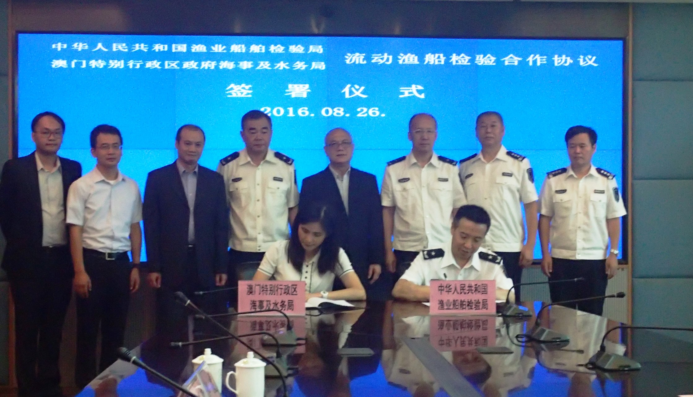 出席簽署儀式的還包括廣東省海洋與漁業局副局長白樺、珠海市海洋農業和水務局局長林粵海、澳門海事及水務局副局長曹賜德、船舶及船員廳廳長李榮勝等。