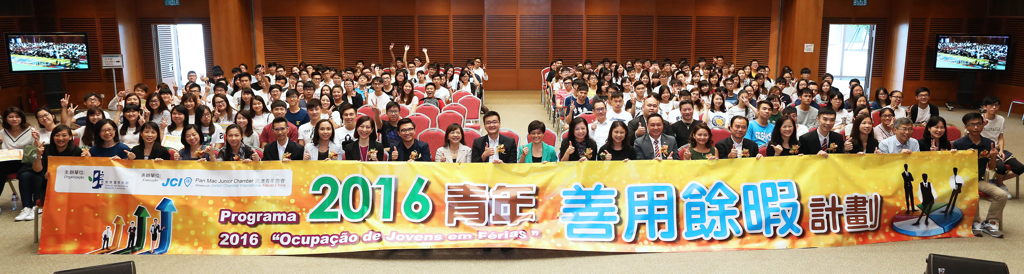 為配合“澳門青年政策”增進社會流動的政策方向,同時加強青年生涯規劃輔導工作,由教育暨青年局主辦、汎澳青年商會承辦、澳門科學館股份有限公司作為支持單位,以及澳門36個公共部門和私營機構共同參與推行的“青年善用餘暇計劃2016” 圓滿結束。本計劃共吸引了1,558名青年報名,甄選出438名青年參加。參加者參與了一系列的生涯規劃培訓及實習活動,計劃由2016年7月2日開始至8月26日結束。為答謝所有參與機構,以及向優秀實習生頒發獎狀,主辦單位於8月27日(星期六)下午3時假澳門科學館舉辦了分享會。