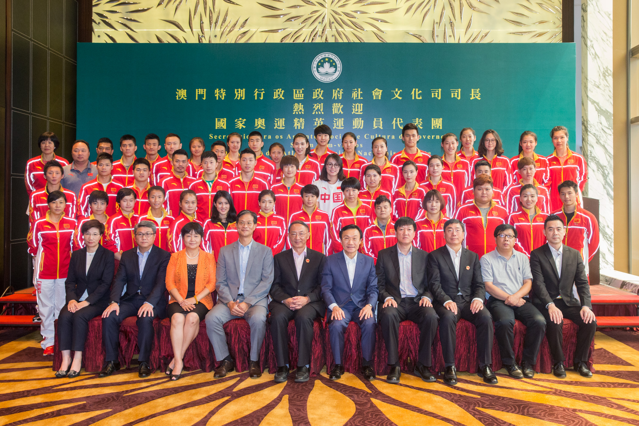 澳門特區政府社會文化司司長譚俊榮8月31日中午宴請里約奧運會國家奧運精英代表團,表達對奧運精英不辭辛苦訪問澳門的謝忱,並期望加強與內地在體育領域的交流與合作。