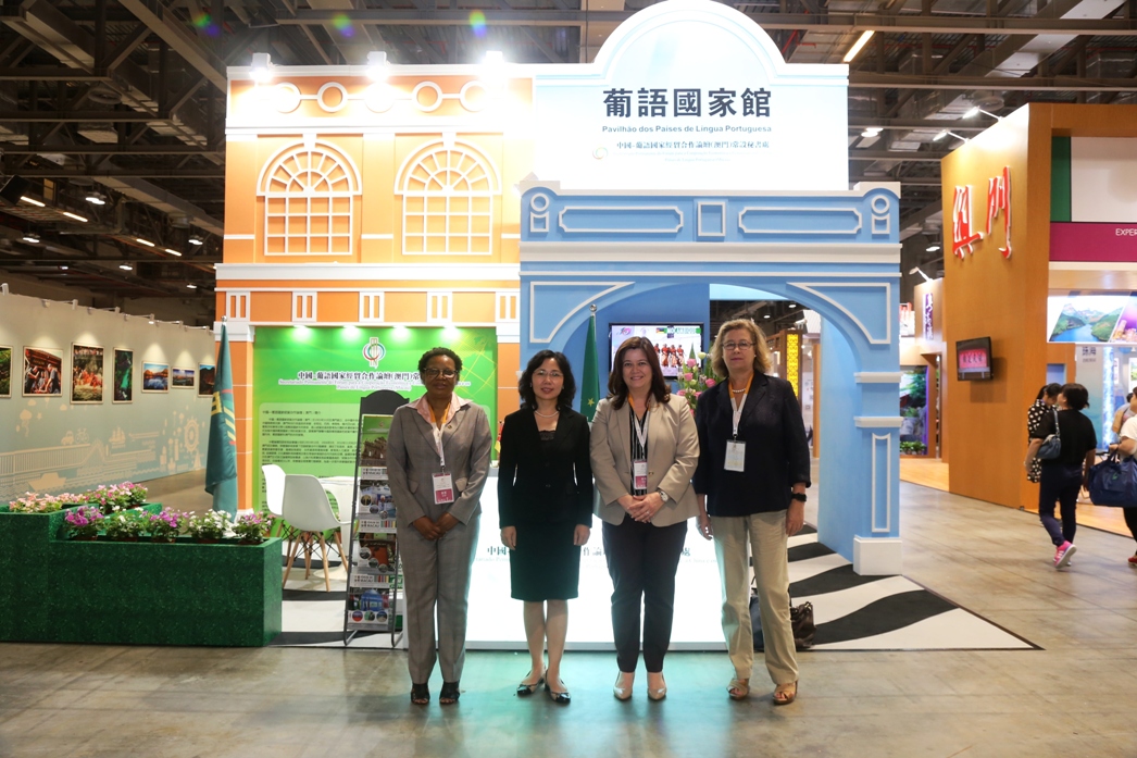 中葡論壇(澳門)常設秘書處代表在“葡語國家館”前合影