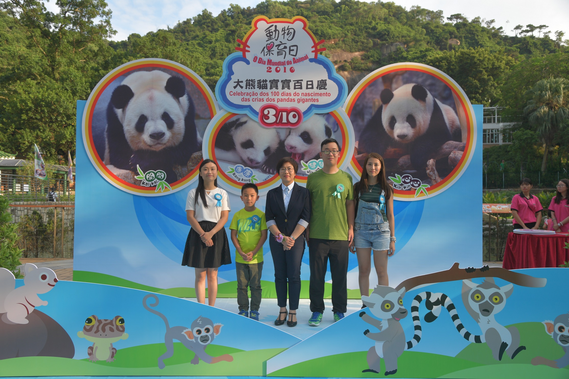 為慶祝大熊貓寶寶“健健”和“康康”誕生滿一百日,民政總署於十月三日下午在石排灣郊野公園舉行“大熊貓寶寶百日慶"活動,並進行“大熊貓寶寶名字齊齊想”大獎頒獎儀式。行政法務司司長陳海帆向四名得獎者頒發獎金及紀念品,一眾嘉賓及獲邀市民更前往探望大熊貓家庭,一起慶祝大熊貓寶寶百日誕。