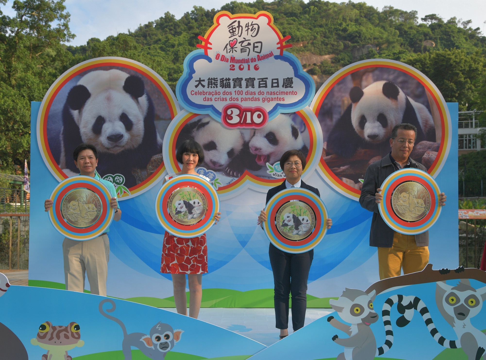 當日亦進行“澳門大熊貓系列 — 健健‧康康一百日紀念金”發佈儀式,由行政法務司司長陳海帆、中央人民政府駐澳門特別行政區聯絡辦公室經濟部副部長朱宏、民署管理委員會主席戴祖義以及中國銀行澳門分行副行長葉兆佳主持。大熊貓基金同意中國銀行澳門分行推出“澳門大熊貓系列 — 健健•康康一百日紀念金",紀念金將於本年11月中旬公開接受認購,中銀澳門每年將撥出紀念金的部分毛收益捐贈予大熊貓基金。
