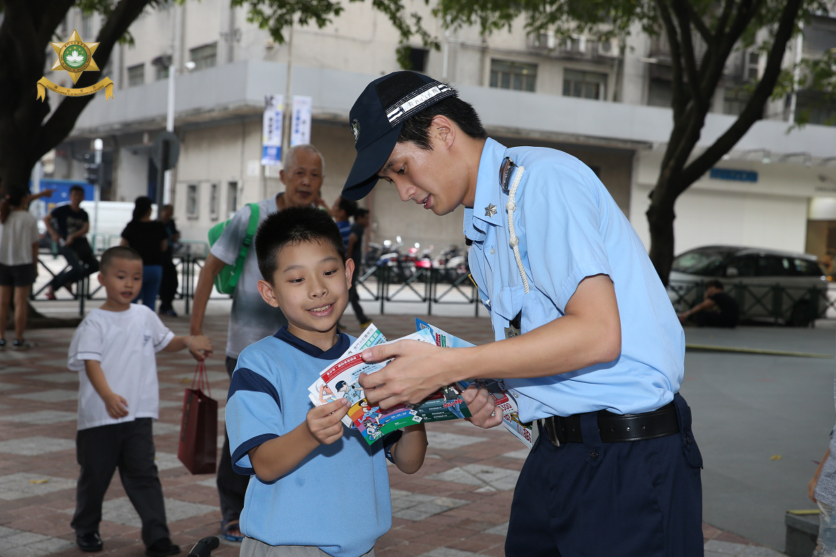 期間,警員向該區青少年派發相關宣傳單張,並講解如何保護自身安全,面對罪惡誘惑的應對方法,需保持冷靜和隨機應變,亦可告訴信任的人或報警求助,以及介紹各犯罪類型須負上刑事責任之後果;另外,在現場提醒他們應遵守交通規則,建議盡量使用過路設施橫過馬路,根據《道路交通法》規定,在50公尺距離內有相關過路設施而行人不使用,可被科處罰款澳門幣300元。