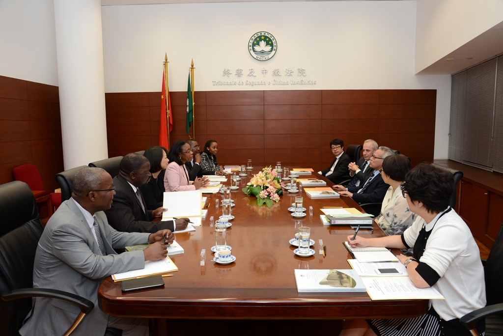 在參觀了終審及中級法院大樓設施之後,代表團與終審法院岑浩輝院長、利馬法官、終審法院院長辦公室陳玉蓮主任、許歡顧問、司法暨技術輔助廳陳格代廳長舉行了會面。
