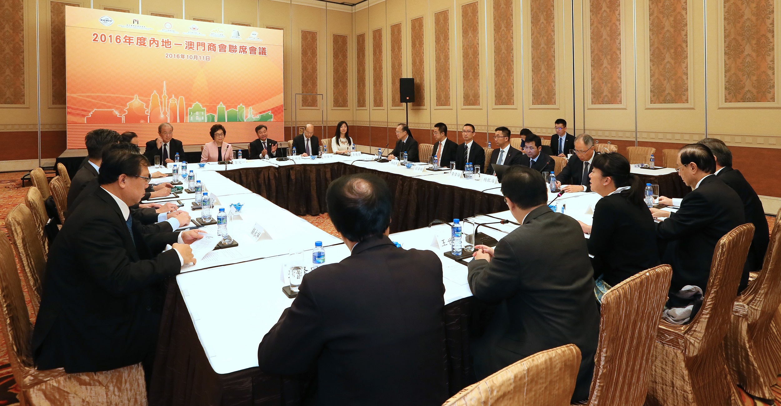 是次會議由中國國際貿易促進委員會、澳門貿易投資促進局、澳門中華總商會、澳門廠商聯合會、澳門出入口商會、澳門紡織商會以及澳門付貨人協會聯合主辦。中國國際貿易促進委員會姜增偉會長、李慶霜國際聯絡部部長及楊平安駐港澳代表處總代表、澳門貿易投資促進局劉關華執行委員、澳門中華總商會賀定一副理事長及黃國勝副理事長、澳門廠商聯合會崔煜林理事長及李時泰副理事長、澳門出入口商會徐偉坤會長及梁錦康副理事長、澳門紡織商會王世民理事長及彭忠良監事長、澳門付貨人協會鄧君方常務副會長及廖玉麟理事長等出席。