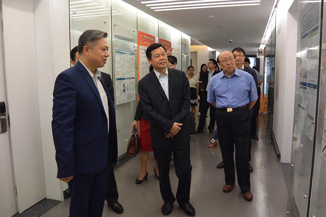 其後,代表團到澳門大學伍宜孫圖書館、大學展館參觀,並在馬許願、科技學院教授余成斌等介紹下,參觀澳大模擬與混合信號超大規模集成電路國家重點實驗室。余成斌展示科研團隊多年來的成果及發展進程。杜占元表揚澳大在科研上取得的傑出成績以及力求突破的精神,並勉勵余成斌作為國家教育部科學技術委員,繼續以身作則,為澳門培育更多科學研究人才,也期望澳大未來辦學路上百尺竿頭,更進一步。