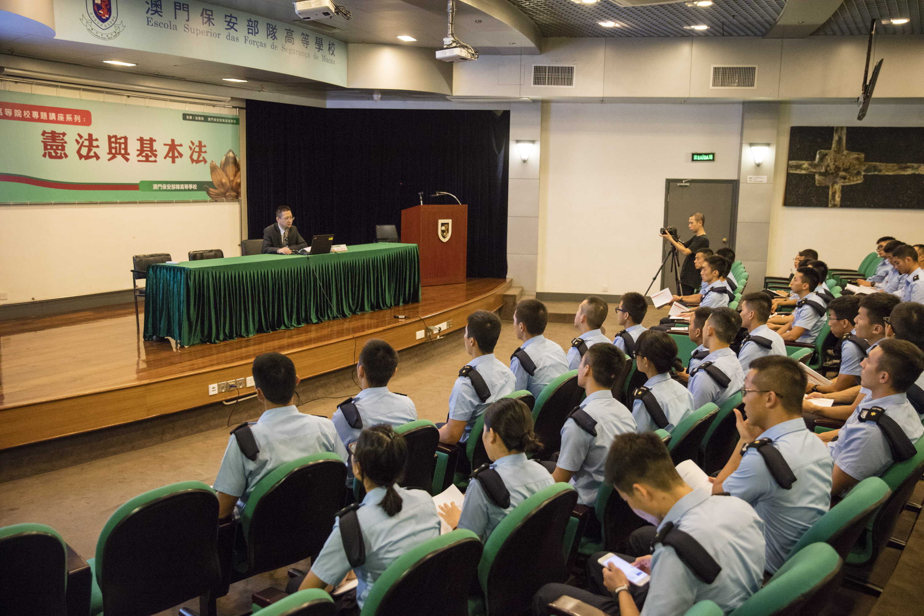 是次系列活動由法務局與澳門保安部隊高等學校合辦,以《憲法》與《基本法》的關係為主題,邀請了澳門理工學院一國兩制研究中心副教授王禹主講,約四十名警官/消防官培訓課程學員參與了是次活動。