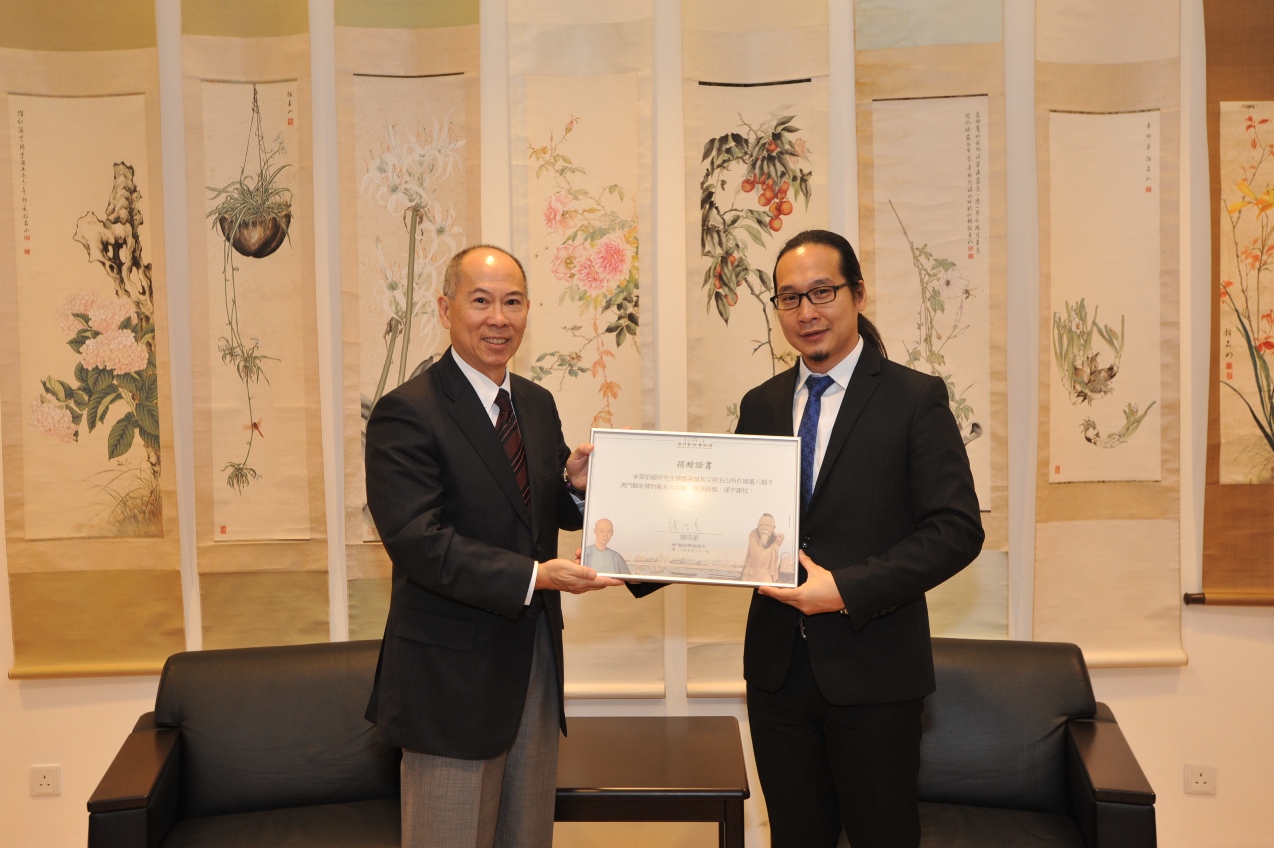 已故澳門前輩畫家招名山家屬,慷慨捐贈招氏遺作八幅予文化局澳門藝術博物館。捐贈儀式日前(十月三十一日)於藝博館舉行,文化局代局長陳炳輝頒發捐贈證書予招名山公子招國祥及其夫人,並向招氏家屬致以衷心感謝。出席儀式人士包括藝博館館長陳浩星、石灣陶瓷館館長盧大成,以及相關人士梁煜輝、安東尼與安俊達。