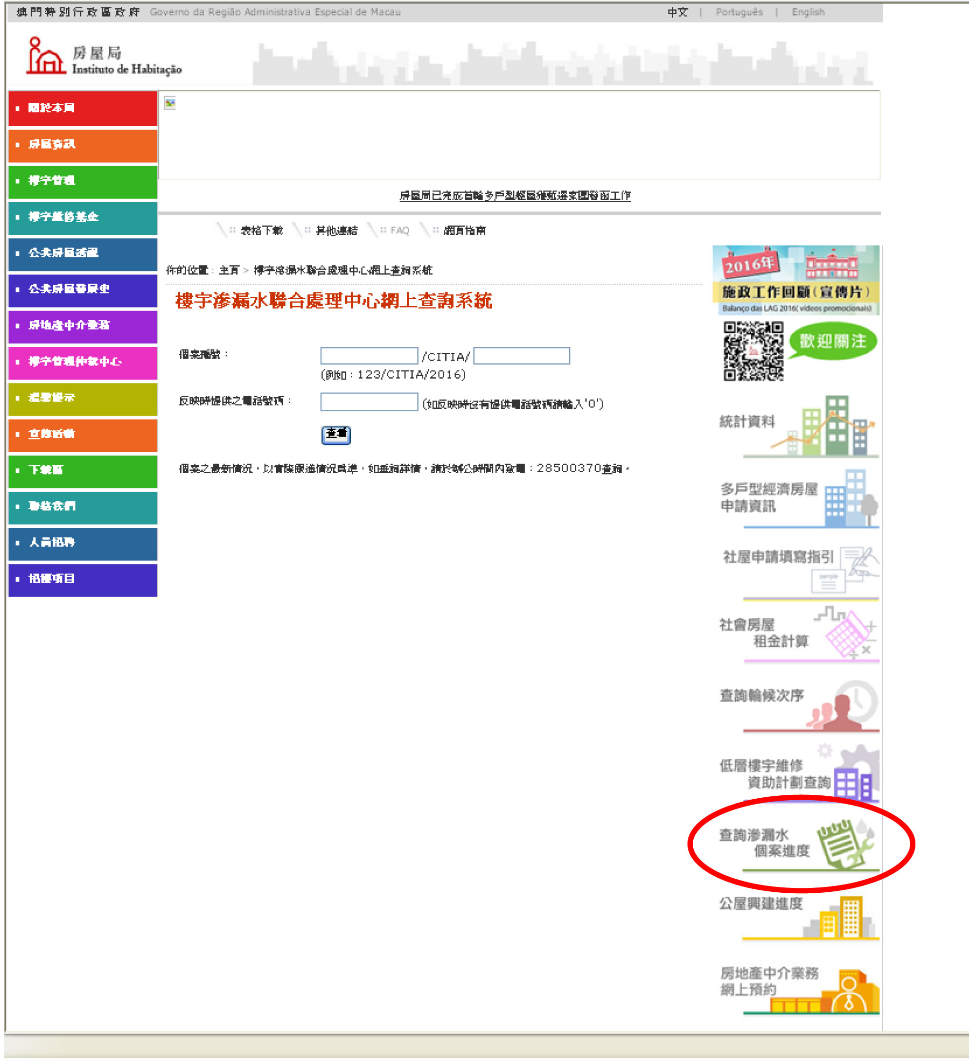 聯合中心已於房屋局網頁內設立樓宇滲漏水聯合處理中心網上查詢系統,方便市民掌握滲漏個案的跟進情況,同時,亦將定期於該局網頁(www.ihm.gov.mo)及微信官方帳號更新相關統計資料。