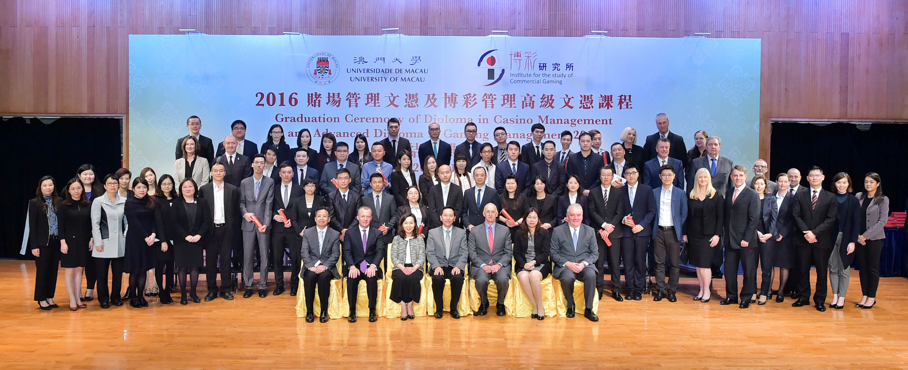 由澳門大學博彩研究所主辦2016年度“賭場管理文憑"課程及“博彩管理高級文憑"課程舉行結業典禮。兩課程舉辦至今培養超過730人,當中有不少已晉升至博彩企業的管理階層。